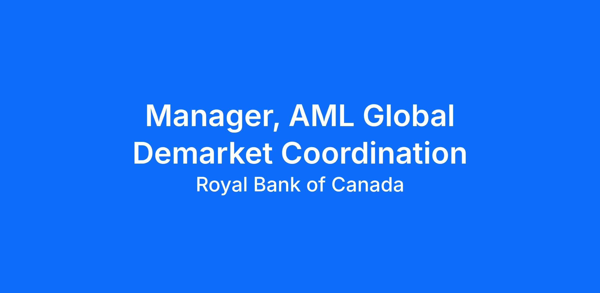 In support of the AML FIU as part of the RBC Global AML Program, the Manager, Global AML Demarkets provides tactical direction and end-to-end ownership over execution of demarkets for AML and CIS globally. Responding to incoming queries, requests and escalations relating to the demarket process, the Manager, Global AML Demarkets is the subject matter expert (SME) for assigned workflow and acts as a mentor and trainer for the related process. Actively participating in a culture of continuous improvement within the Global AML Demarkets Team, the Manager, Global AML Demarkets collaborates with other teams to establish a best in class AML FIU.
