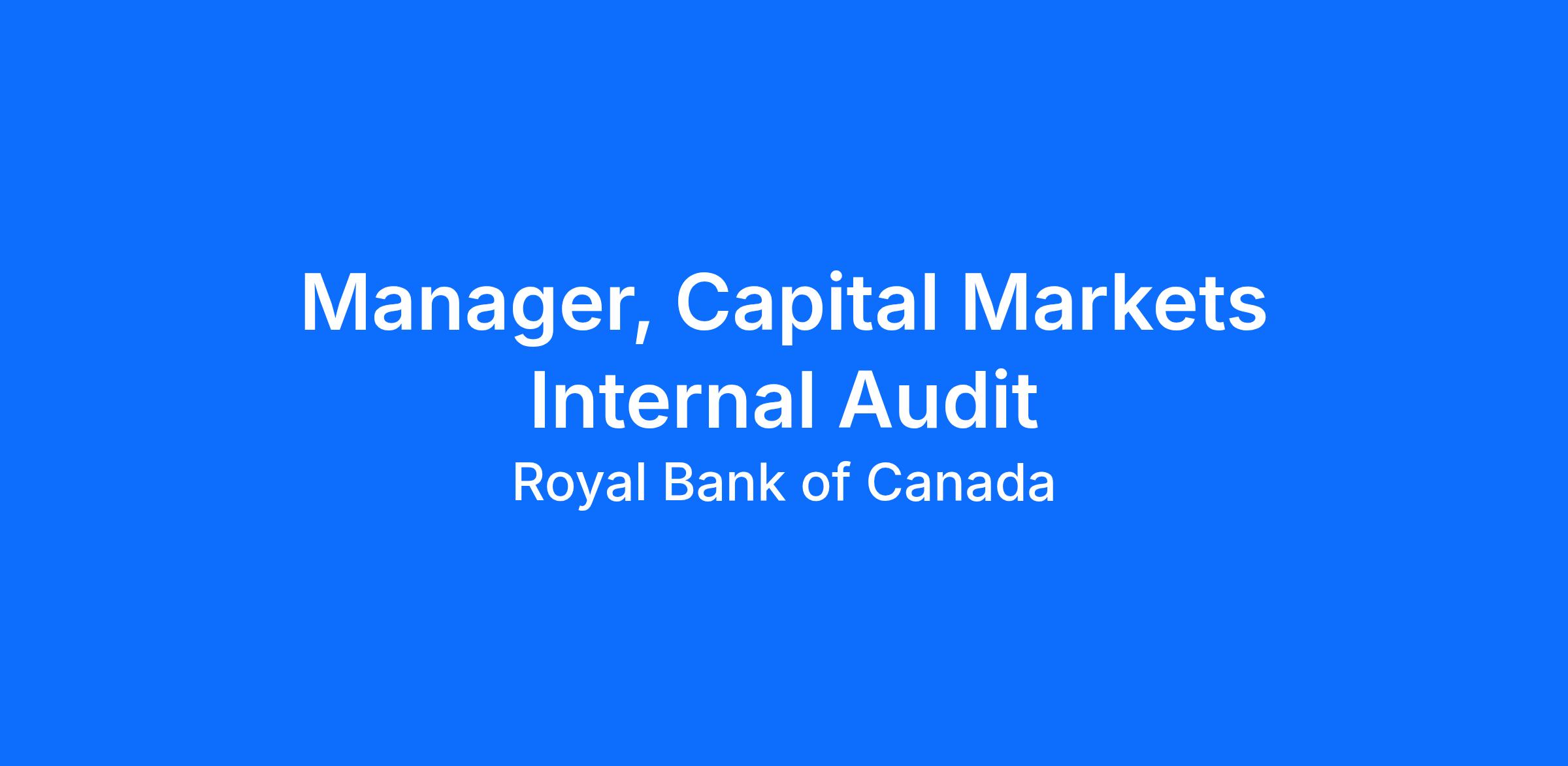 As a Manager, Capital Markets, Internal Audit you will assess the effectiveness of internal controls, risk management practices, corporate governance processes, and fraud prevention and detection, in the Capital Markets platform of RBC. You will take a strategic approach to engagements that incorporate emerging risks and the implementation of new approaches and techniques. This role will operate within a global resource model; assigned to a home platform but capable of working in any RBC platform as part of a pool of resources.