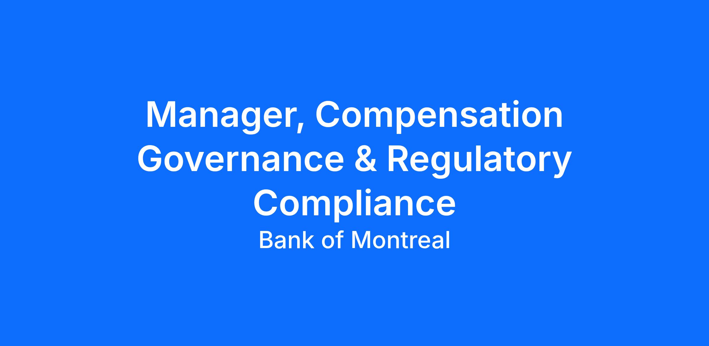 Provides compensation expert advice and counsel to enhance BMO’s compensation risk management and governance frameworks. Supports the governance design, program design and execution of compensation regulatory programs at BMO. Understands and aligns to regulatory requirements in applicable jurisdictions. Completes specific strategic & operational work to deliver program objectives and/or minimize risk.