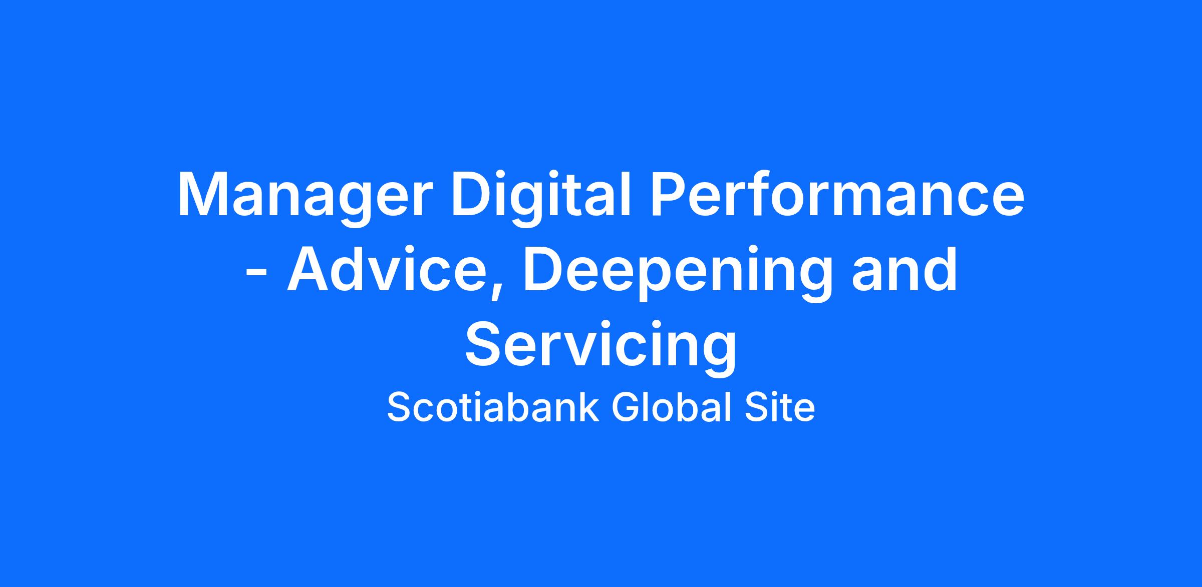 As the Manager, Digital Performance, you will play a key role in advancing one of Scotiabank’s strategic priorities — delivering a best-in-class digital experience that deepens customer relationships through personalized advice and seamless servicing. You’ll be responsible for developing insights and performance reporting to measure and optimize the success of these digital experiences. Your ability to transform data into compelling stories will influence product backlogs, priorities, and strategic decisions across business and technology teams.