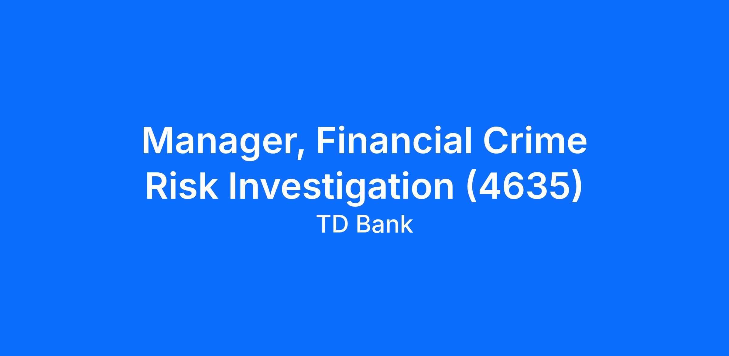 The Manager, AML Financial Crime Risk Investigations leads a group of AML Analyst/Investigators and manages daily activities within the Adjudication's team. The manager is expected to provide guidance, coaching, mentorship, and development to team, and to ensure project objectives and operational results are achieved for the overall group.