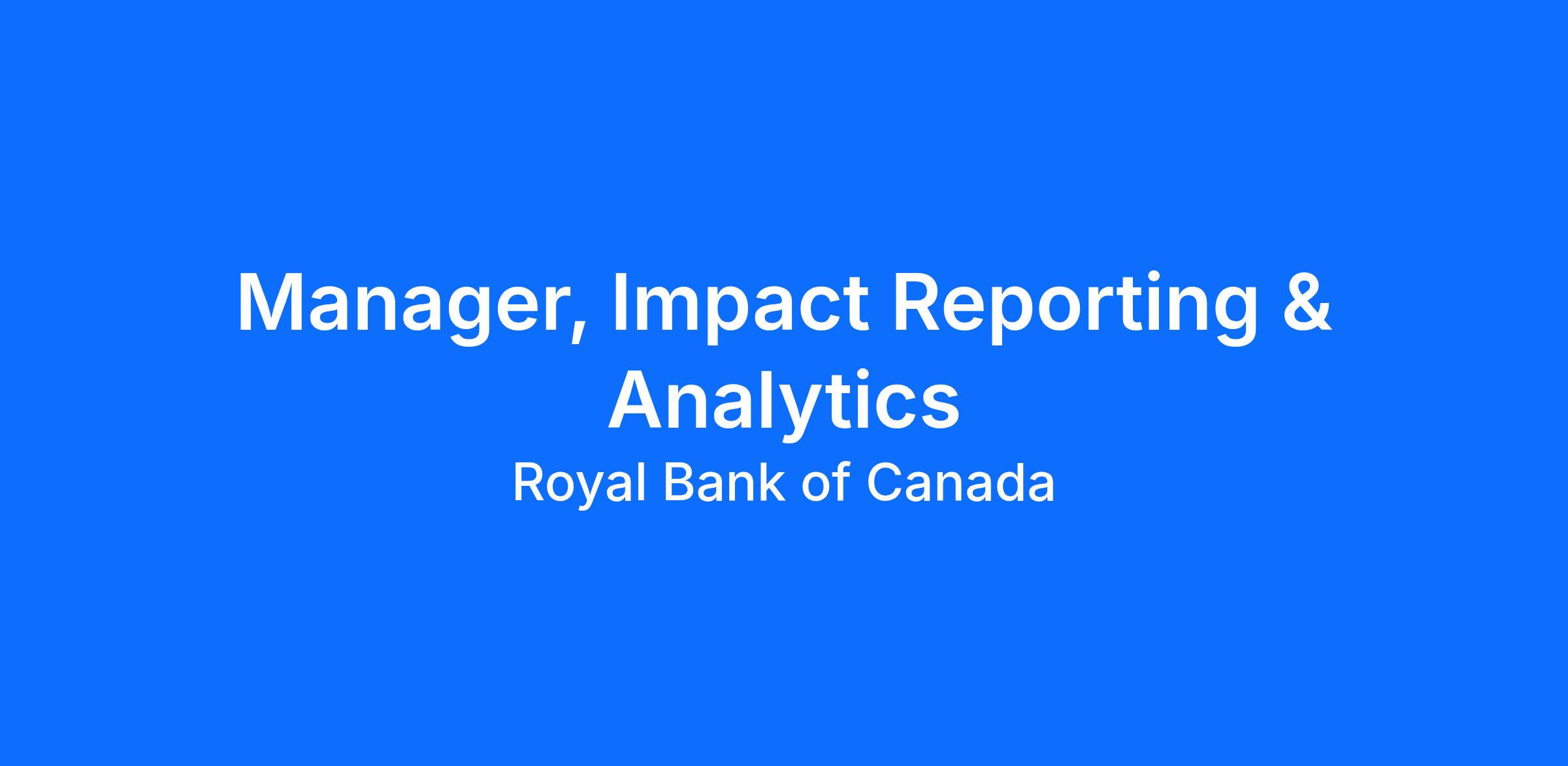 This is an opportunity to join RBC’s Sustainability and Impact team as Manager, Impact Reporting and Analytics.