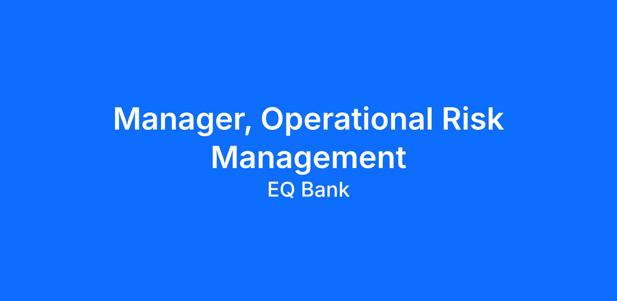 The Manager, Operational Risk Management supports the development and ongoing execution of a strong operational risk management program across Equitable Bank, and provides independent oversight and effective challenge (as the second line of defence) to ensure the Bank operates within its established operational risk appetite.