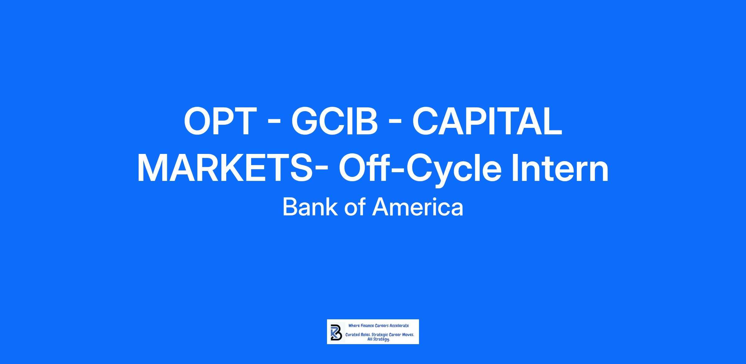 OPT - GCIB - CAPITAL MARKETS- Off-Cycle Intern