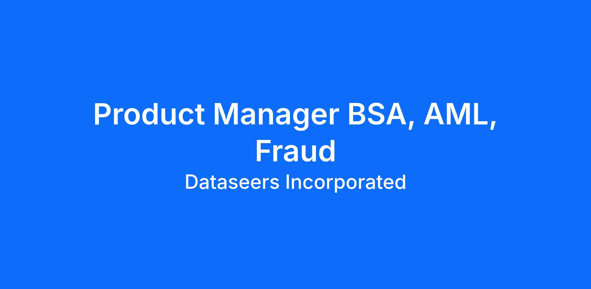 We are seeking a Product Manager with deep expertise in BSA, AML, and fraud to lead and evolve capabilities across CrimeSeer and FraudSeer, with close integration into IdentitySeer.