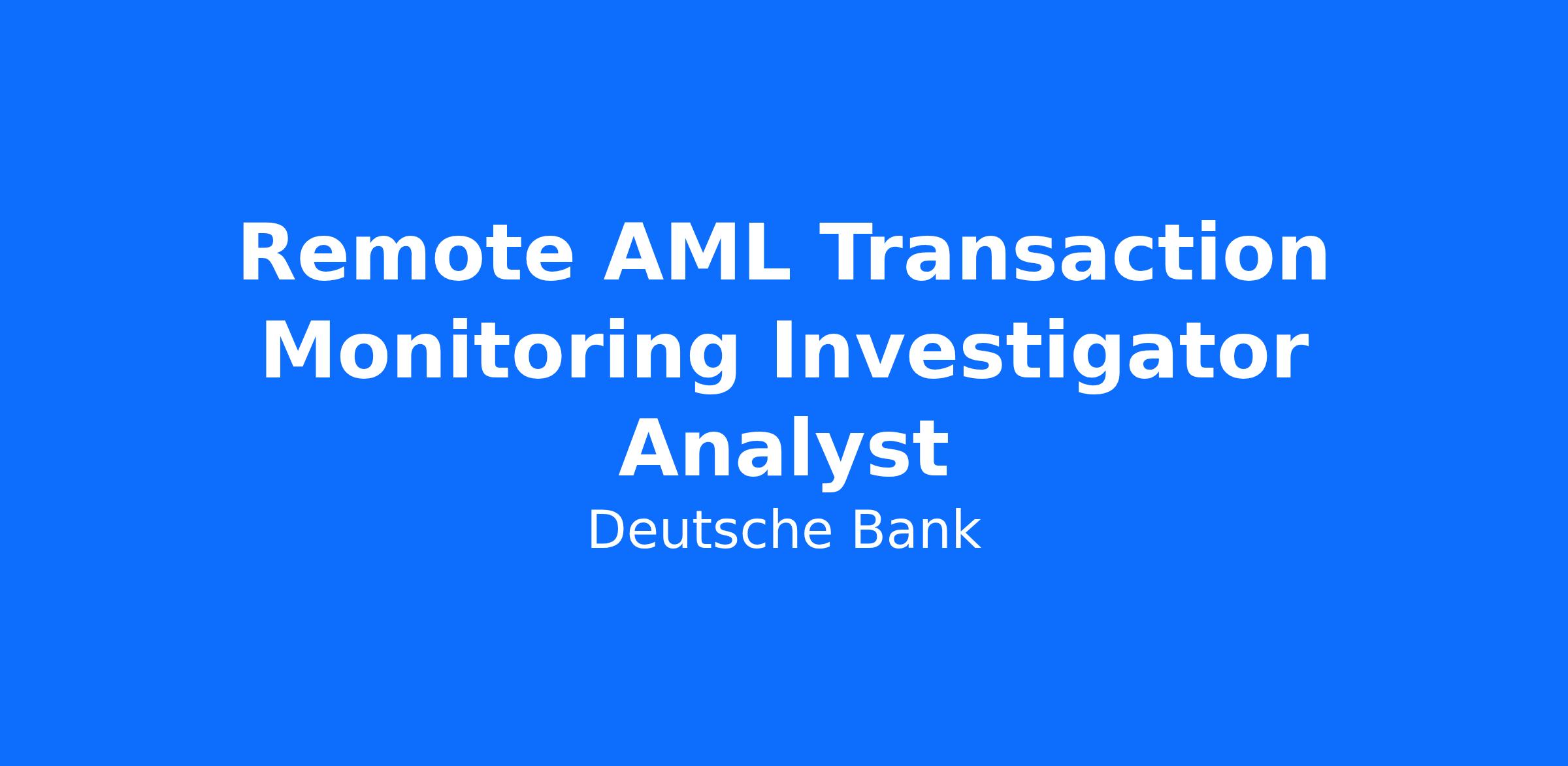 Job Title Remote AML Transaction Monitoring Investigator