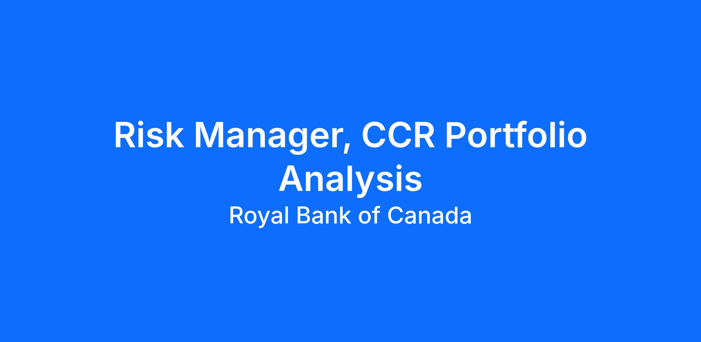 Counterparty Credit Risk (CCR) is responsible for providing risk oversight of RBC’s trading activities including counterparty exposure measurement and monitoring, portfolio risk analysis and reporting.