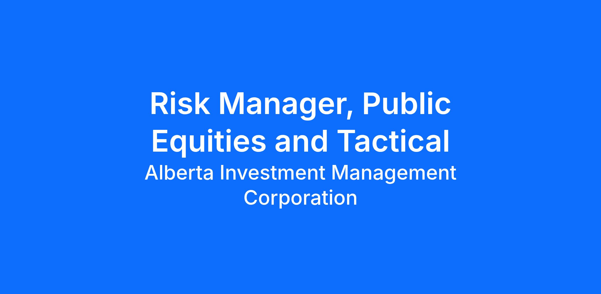 This position within IRM will take a proactive approach to building strong analysis and advice that support the Public Equities and Tactical Asset Allocation investment strategy. This position reports to the Senior Risk Director, Public Equities & Tactical and can be based in Edmonton or Calgary.