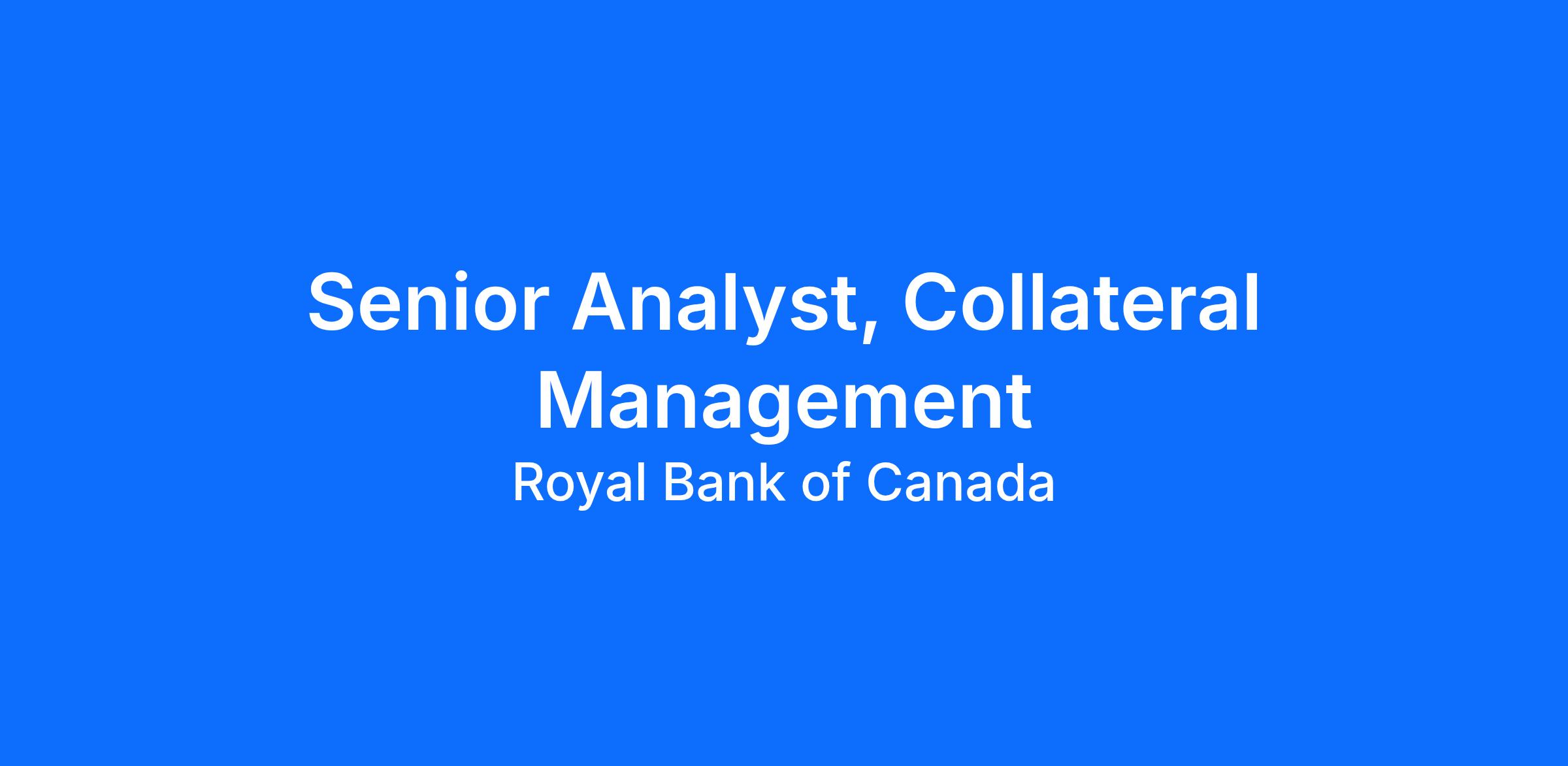 We are seeking a Senior Analyst to support collateral management operations of the RBC ICL Investment Group within RBC ICL. The ideal candidate will provide positive advice and counsel for collateral trade operations and agreement administration for insurance products and derivatives while collaborating closely with internal and external stakeholders. This role is essential for ensuring effective collateral trade management and governance, maintaining strong risk controls, and supporting strategic decision-making.