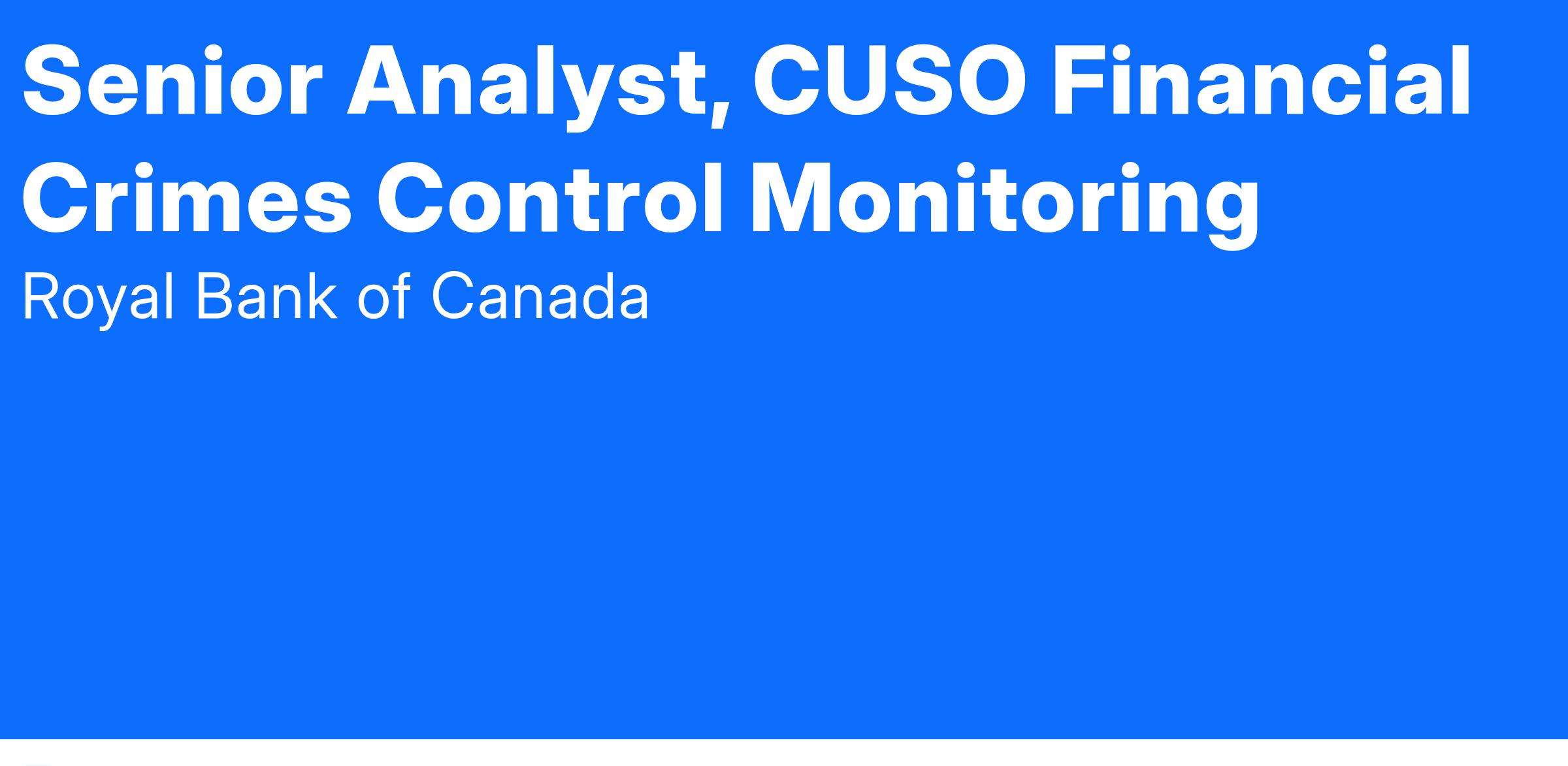 The Senior Analyst will support the U.S. Financial Crimes Chief Administrative Officer in the ongoing operation of the Combined U.S. Operations (“CUSO”) Financial Crimes regional execution of the Enterprise Financial Crimes Risk Management Framework and related policies, standards, and methodologies specific to the administration and oversight of the internal control environment. This role will have accountability for executing the CUSO Financial Crimes Control Monitoring functions in ensuring conformance to the RBC Internal Controls Management Policy (“ICMP”) and enabling regional BSA/AML Officer’s oversight of the Financial Crimes internal control environment.