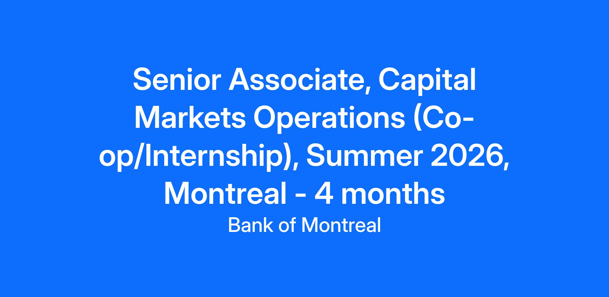 Note: Only students currently enrolled in an academic program and returning to their studies will be considered for Co-op/Internship opportunities. Students who recently graduated are invited to apply to our New Grad opportunities which are available at https://jobs.bmo.com/ca/en/new-grad.