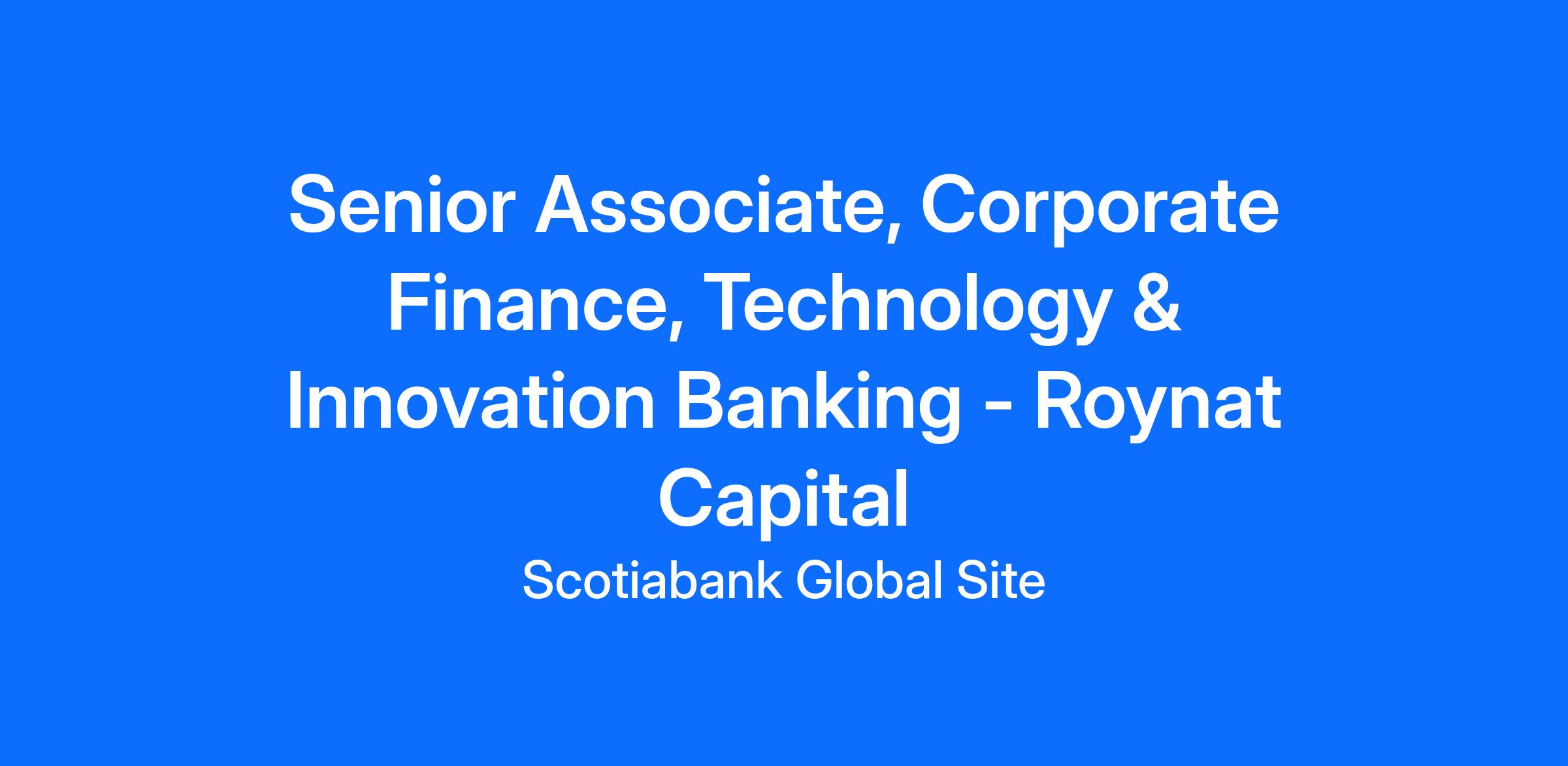Senior Associate, Corporate Finance, Technology & Innovation Banking - Roynat Capital