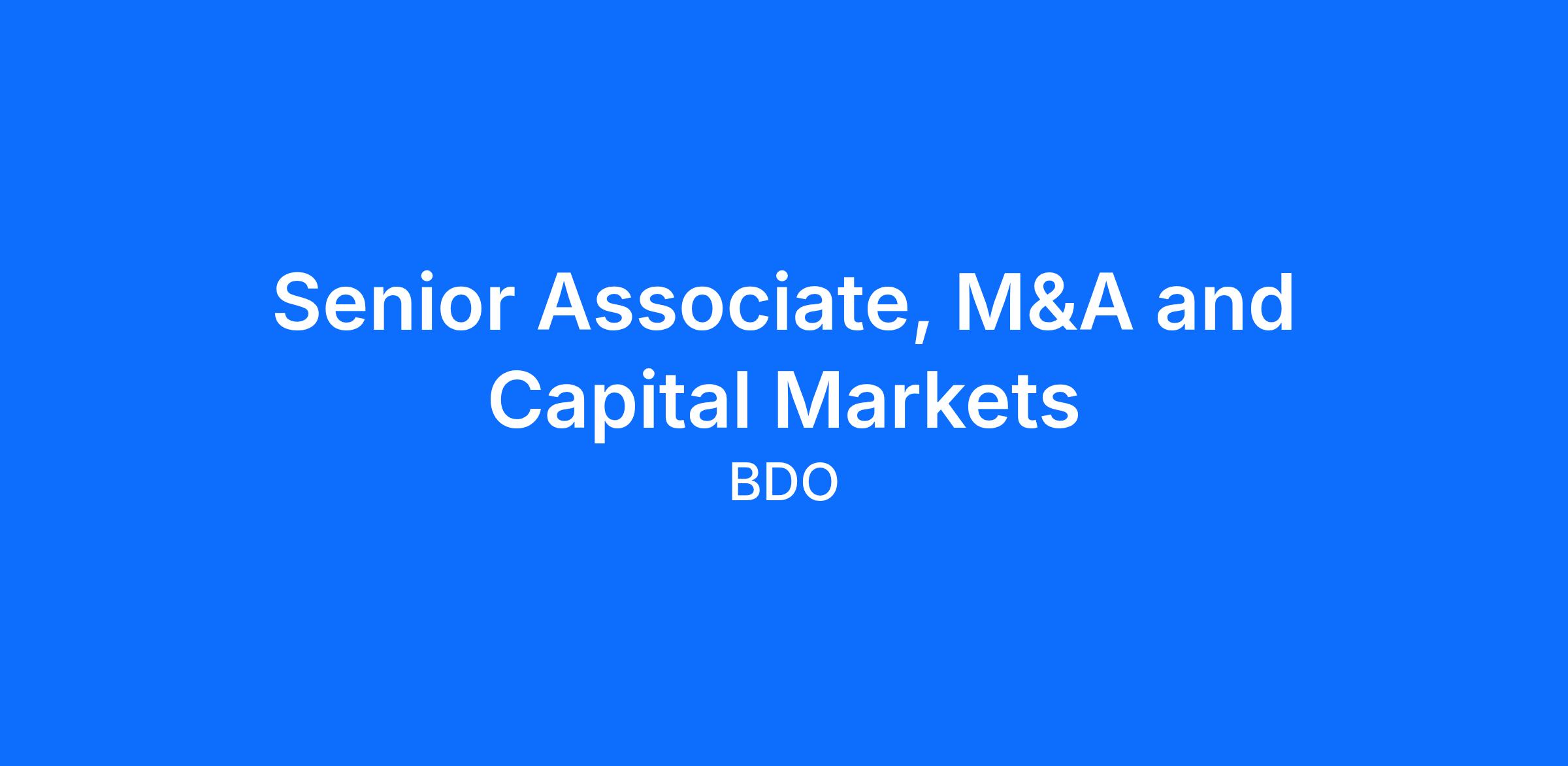 Our Toronto office is looking for a Senior Associate, M&A and Capital Markets to join our Advisory team and own the following responsibilities for an existing vacancy: