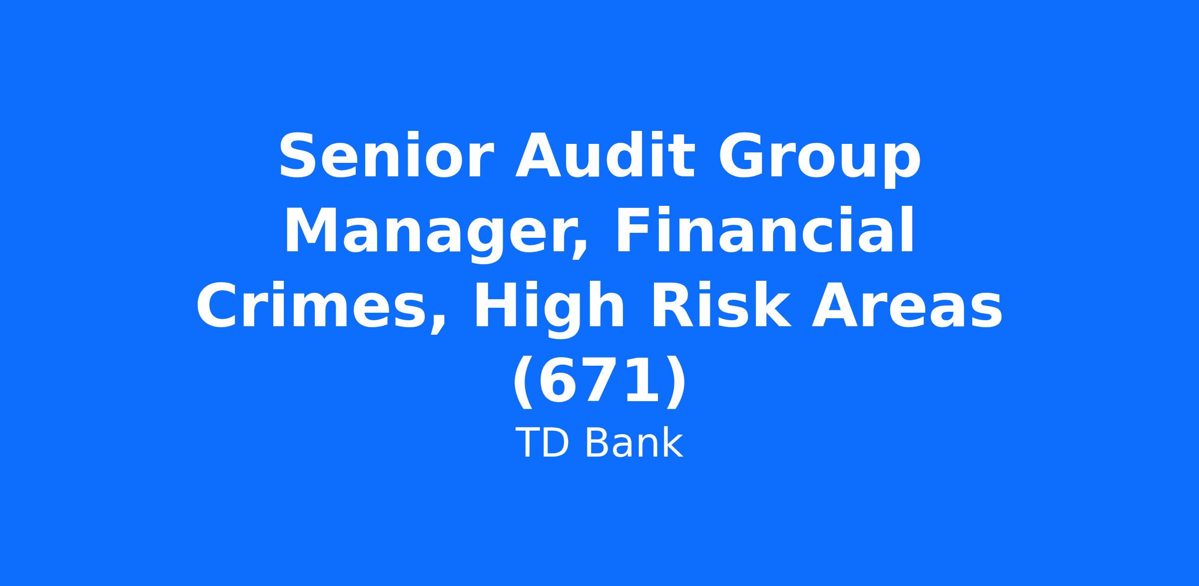 The position of Senior Audit Group Manager, Financial Crimes Audit, High Risk Areas resides within the Financial Crimes Centre of Excellence of TD's Audit Department. The Senior Manager is a Financial Crime Professional, resilient, dynamic, trusted advisor, relationship manager, people manager and adaptive leader with knowledge and experience with different facets of the Financial Crime Risk Management Program including Governance, Management Reporting, Organization Structure and Staffing, Policies, Standards, Procedures, Risk Assessment, Assessment of New Products and Initiatives, Training, Regulatory Compliance Management, Customer Due Diligence/Know your Customer, Enhance Due Diligence, Customer Risk Rating including High Risk Customer Types (Money Service Business, Politically Exposed Person, Heads of International Organizations etc.) Investigations, Demarketing, Regulatory Reporting (Suspicious Transaction Reports, Large Cash Transaction Report, Electronic Funds Transfer Reports, Terrorist Property Report), Transaction Monitoring, Sanctions, Record Retention, as well as data analytics, technology, data, models and emerging technologies such as Artificial Intelligence and Machine Learning.
