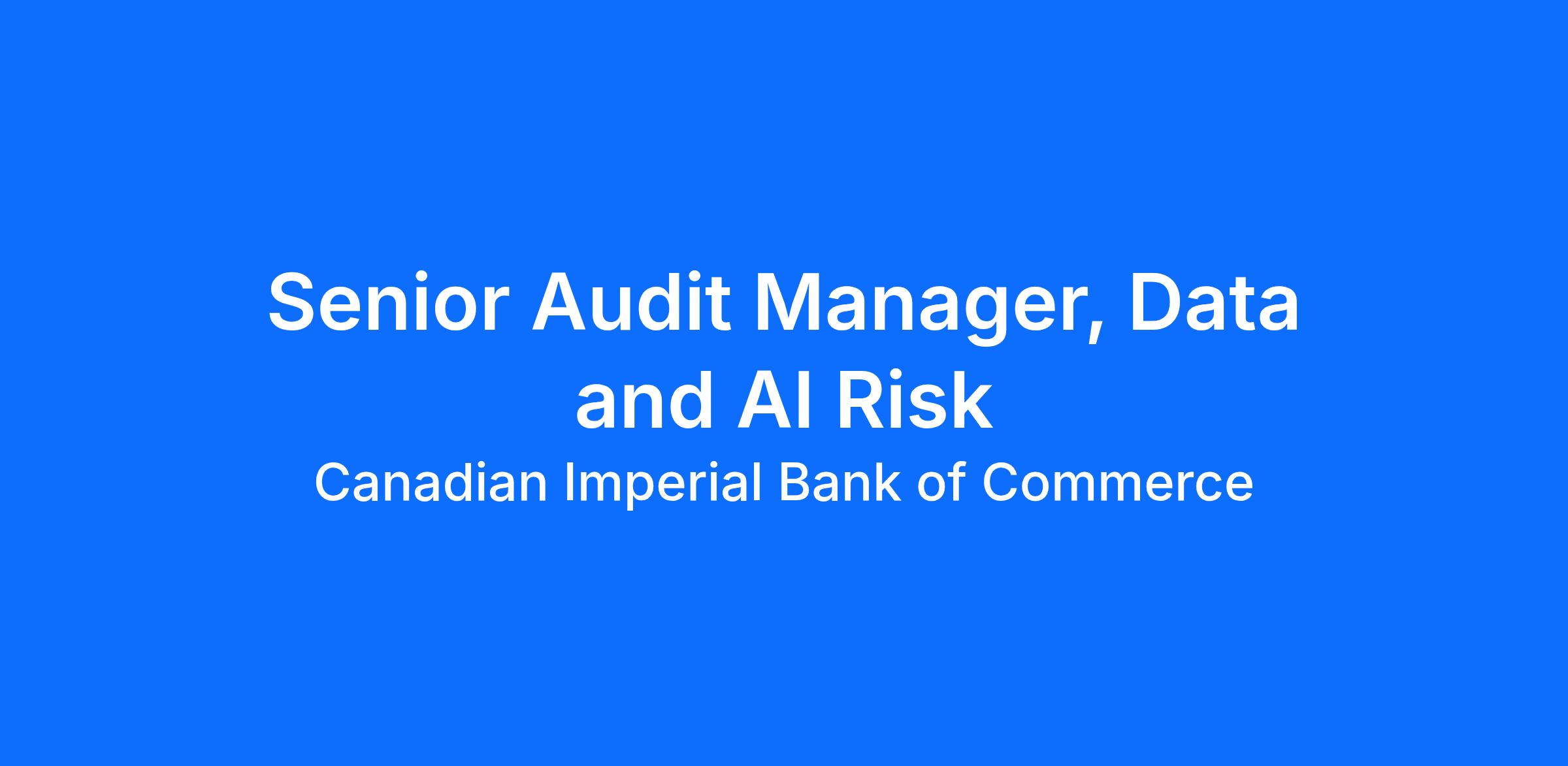 As the Senior Audit Manager, Data and AI Risk, you are expected to be a Subject Matter Expert with expertise in Data governance and management, Records Management and AI audit, risk & controls. This includes areas such as Data governance, Artificial Intelligence (AI) Governance, risk management, operations and services across multiple lines of business. You'll support Internal Audit teams by providing consultation and developing work programs to ensure comprehensive coverage of Data risk within the audit universe, as well as providing guidance and training. You will participate in various audits and regulatory reviews, performing and documenting your work in accordance with CIBC Internal Audit methodology. You will be accountable for the quality of audit procedures and documentation you prepare. This role reports to the Director, Data and AI Risk, Internal Audit.