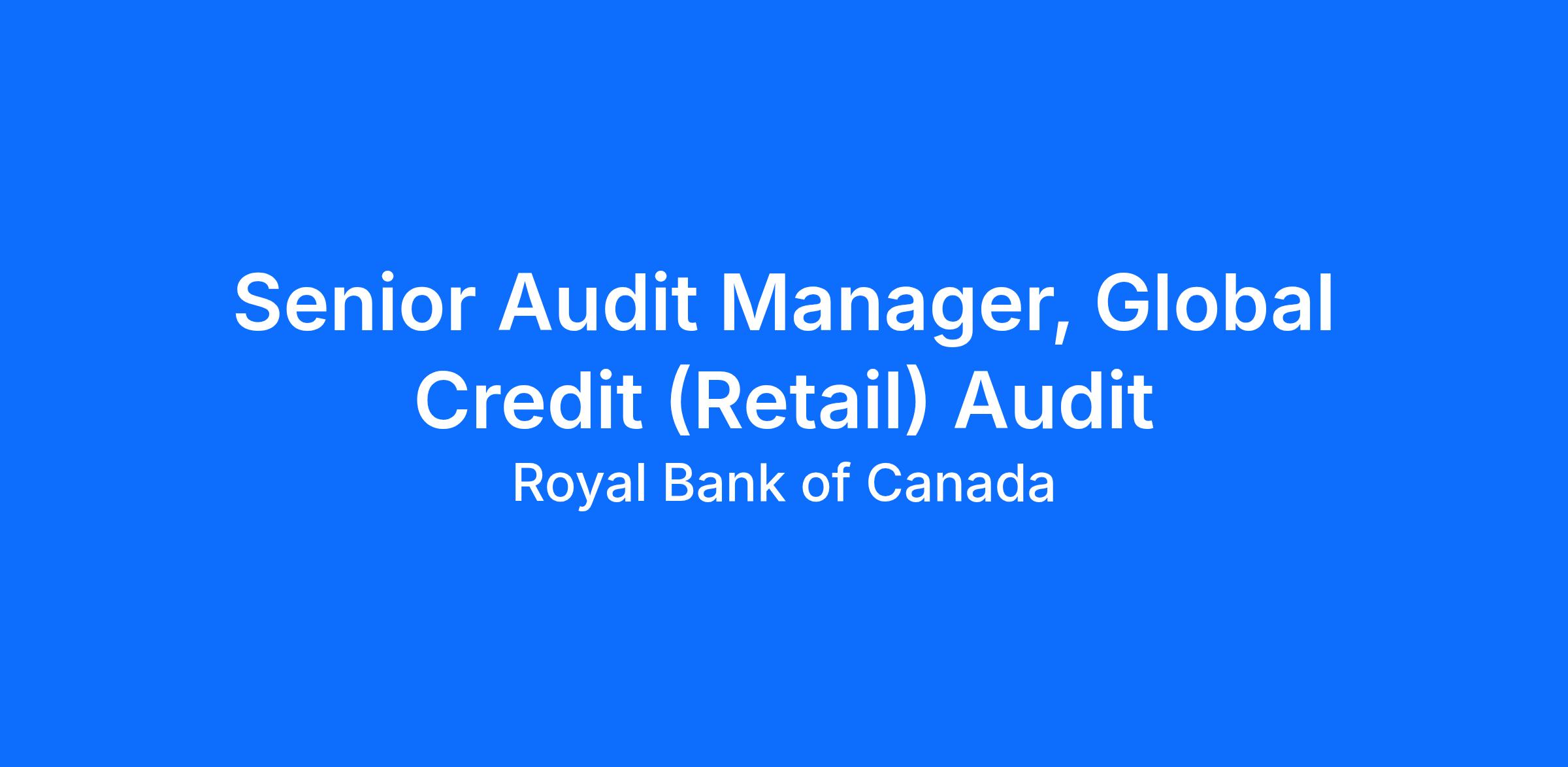 As a Senior Manager, Global Credit (Retail Credit) CoE – Internal Audit Services, you will provide independent, objective risk assessment and evaluation of the effectiveness of risk management practices, internal control and corporate governance processes related to Retail Credit Risk globally at RBC. Results ultimately impact key stakeholder relationships including management, regulators, shareholders, and customers.