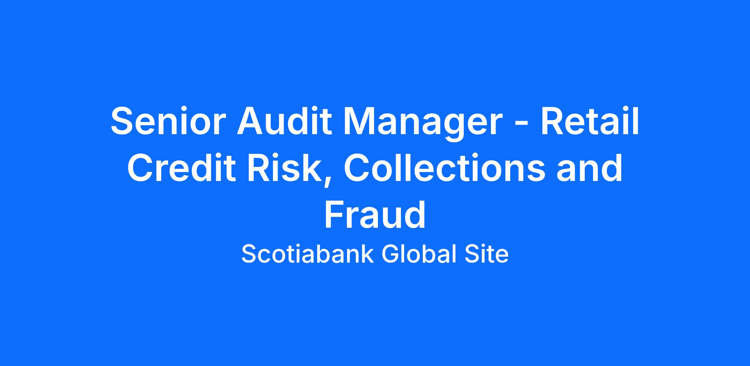 The Senior Audit Manager assists in leading internal audit activities for Retail Credit Risk, Collections and Fraud in support of the Audit Department in executing on its global mandate, ensuring business strategies, plans and initiatives and all audit activities are conducted / executed / delivered in compliance with governing regulations, internal policies, and procedures.