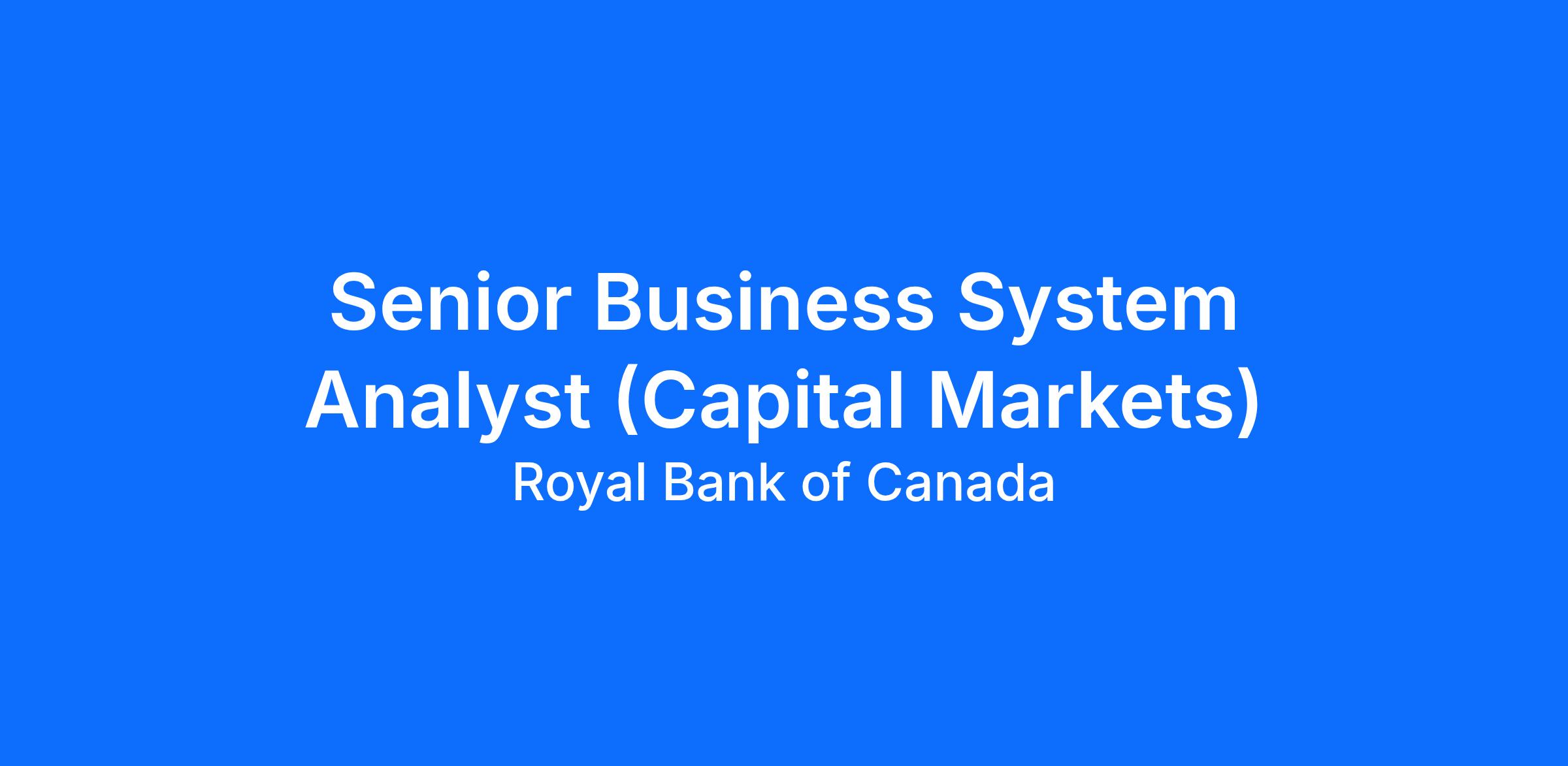 The candidate for this Business System Analyst role will join the Global Middle Office (GBOI) team under the BCS Technology group of RBC Capital Markets.