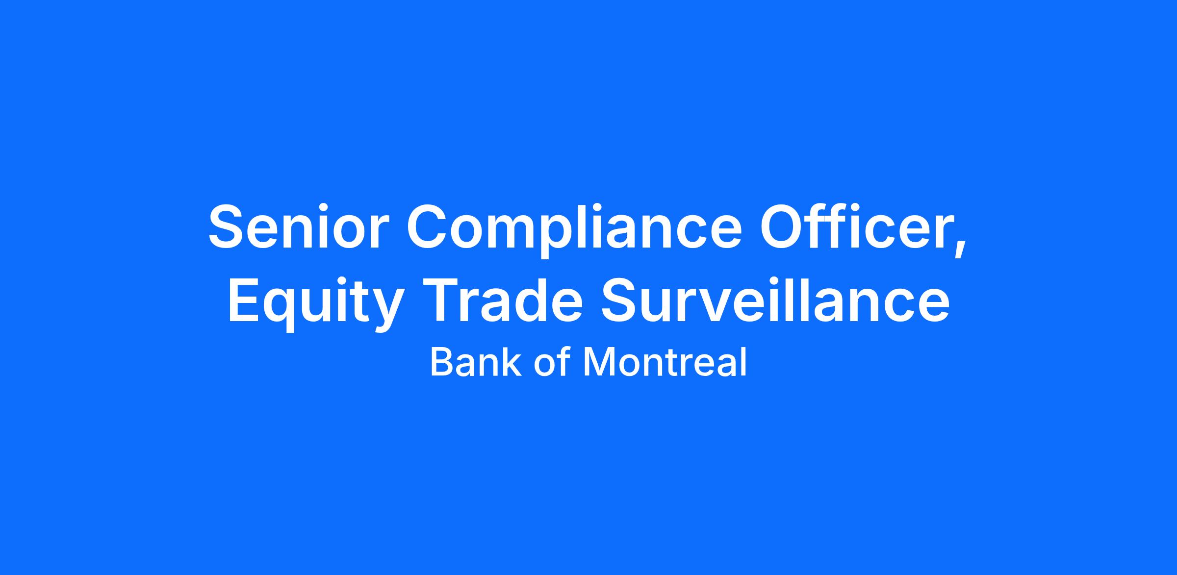 Reporting to the Director of Trade Surveillance, the Compliance Officer supports the implementation, maintenance, and administration of the compliance and risk monitoring program for Global Markets (Canada). This role conducts risk assessment, monitoring, and surveillance activities to ensure alignment with the Enterprise‑wide Compliance Program, regulatory requirements, corporate policies, and risk appetite. The Compliance Officer partners with Capital Markets LOBs and internal stakeholders to meet regulatory, corporate, and fiduciary obligations. The role maintains current regulatory knowledge, identifies and addresses compliance gaps, advises on regulatory implications of new policies or products, and supports the development and implementation of revised controls, policies, and programs. The Officer maintains compliance information for analysis and reporting.