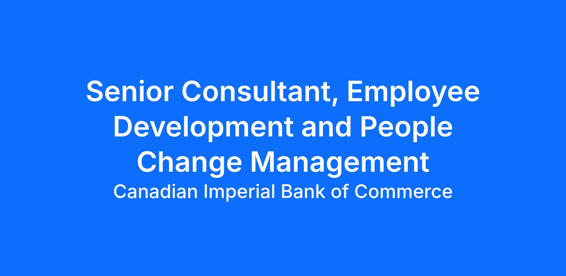 The Senior Consultant, Employee Development and People Change Management is a key individual contributor within Business Banking at CIBC, responsible for client experience as well as leading the design, development, and implementation of comprehensive employee experience initiatives. This role carries elevated responsibility for enhancing employee engagement, driving strategic change management, and fostering a culture of continuous improvement to support business growth and talent development. The Senior Consultant partners closely with senior leadership and cross-functional teams to ensure employee experience strategies are aligned with business objectives and deliver measurable impact across the organization.