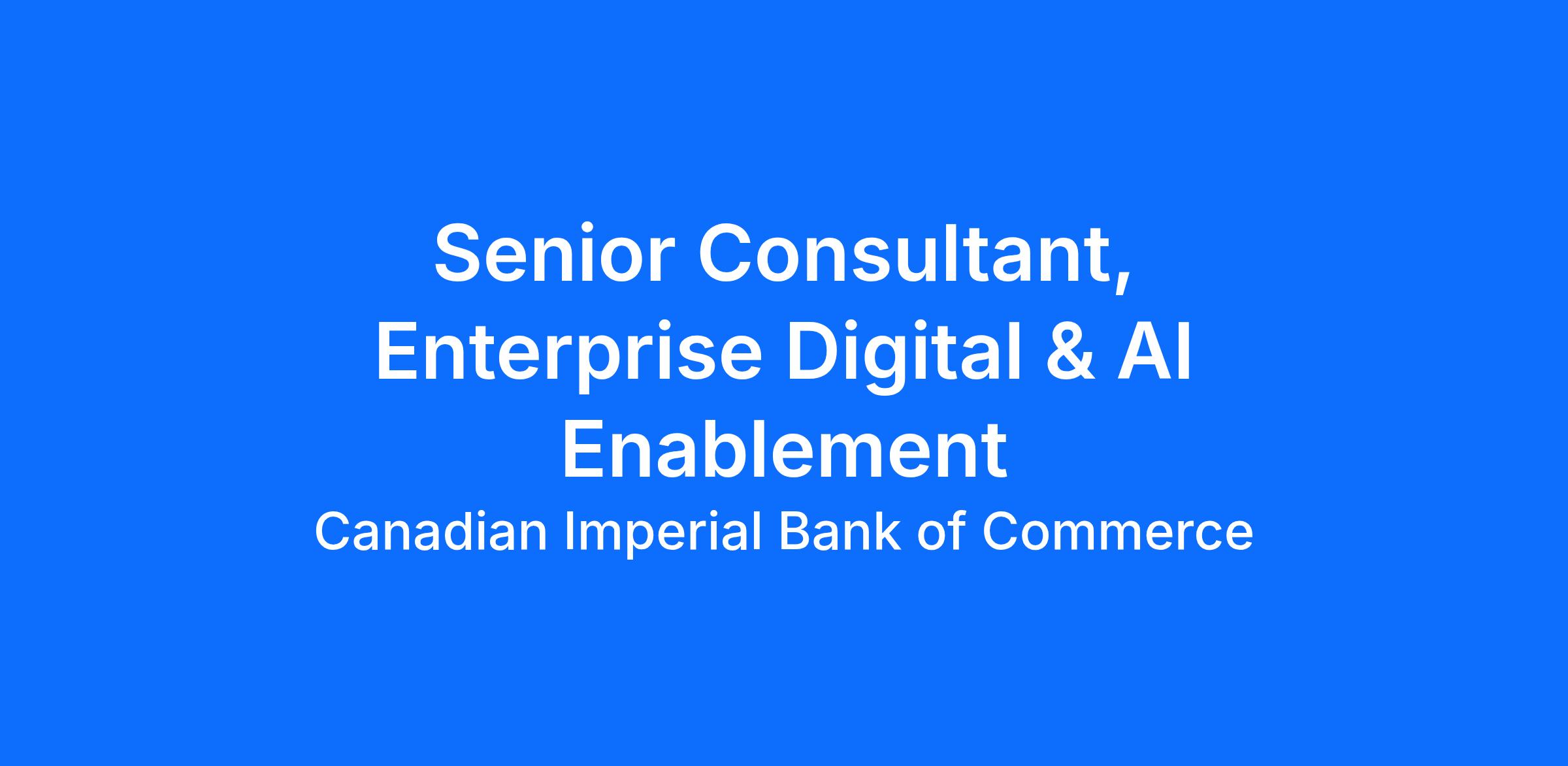 At Enterprise Digital & AI Enablement, we’re building the bank of the future. The Senior Consultant, Enterprise Digital & AI Enablement will play a critical role in shaping and delivering transformational initiatives that drive impact across the organization and for our clients. This role is at the forefront of change, championing the adoption of new ways of working and fostering a culture that embraces innovation and continuous improvement. This role supports the end-to-end lifecycle of strategic programs – from opportunity identification to execution – with a strong emphasis on change management. With a focus on embedding AI and digital capabilities that are scalable, people-centric, and business aligned, you will proactively identify potential change barriers and create strategies to mitigate them, ensuring employees are engaged, prepared, and supported throughout the transformation journey. Success in this role requires a blend of strategic thinking, cross-functional leadership, disciplined execution, and the ability to translate complex business needs into clear action. You’ll drive change that sticks, align stakeholders around a shared vision, and deliver with speed – helping us build the next generation of enterprise solutions.