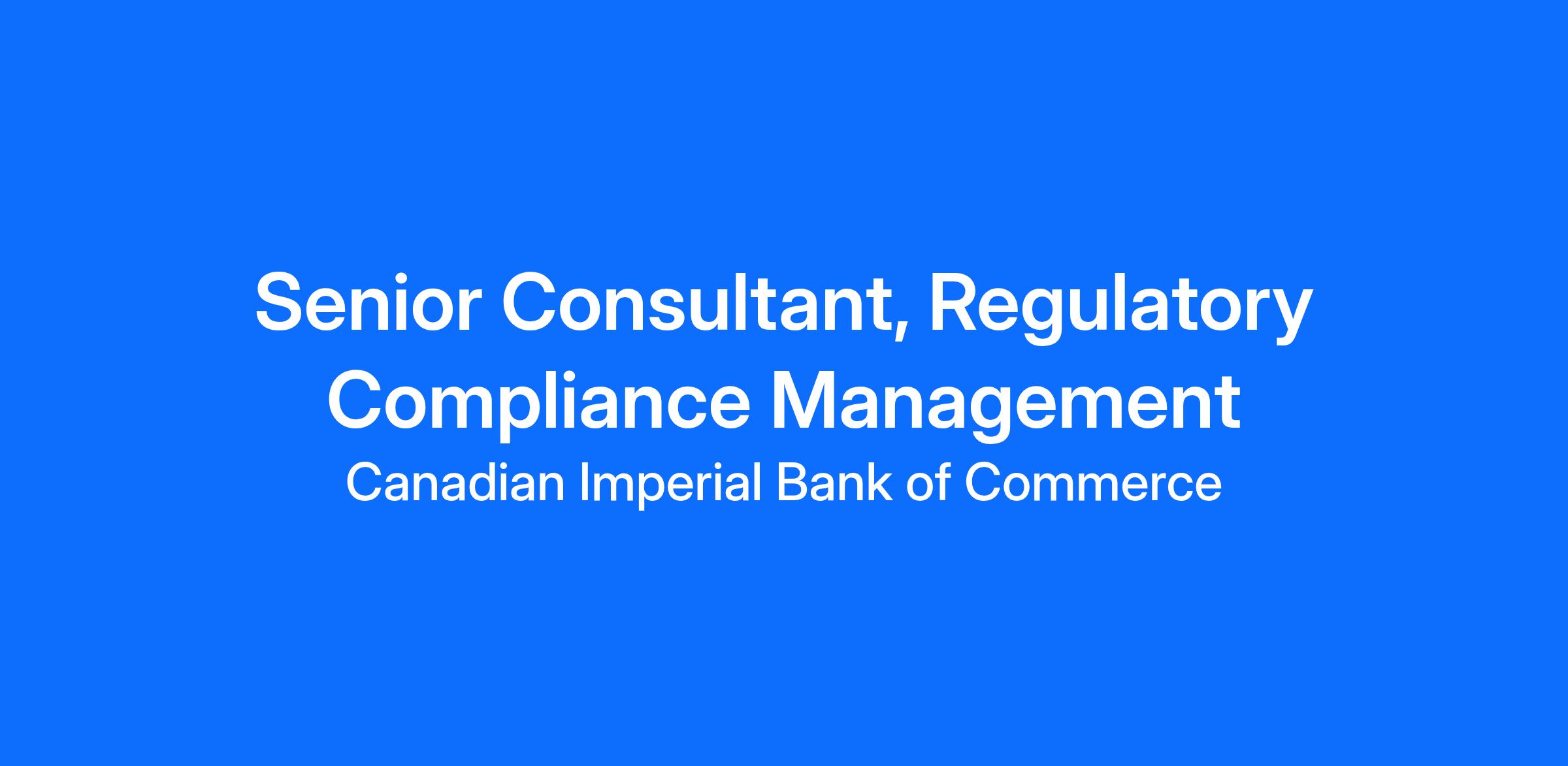 The Senior Consultant, Regulatory Compliance Management (RCM), is a key member of the Canadian Retail Banking Compliance (CRBC) team, serving as an Oversight Function (OF) lead and reporting to the Senior Director, Regulatory Compliance Management, Reporting and Analytics. You will support the RCM Accountable Officer and will be responsible for executing oversight activities while serving as a subject matter expert for specific regulatory requirements, ensuring the Bank’s regulatory compliance risk is managed within acceptable levels and in accordance with CIBC’s RCM Policy and supporting documentation.