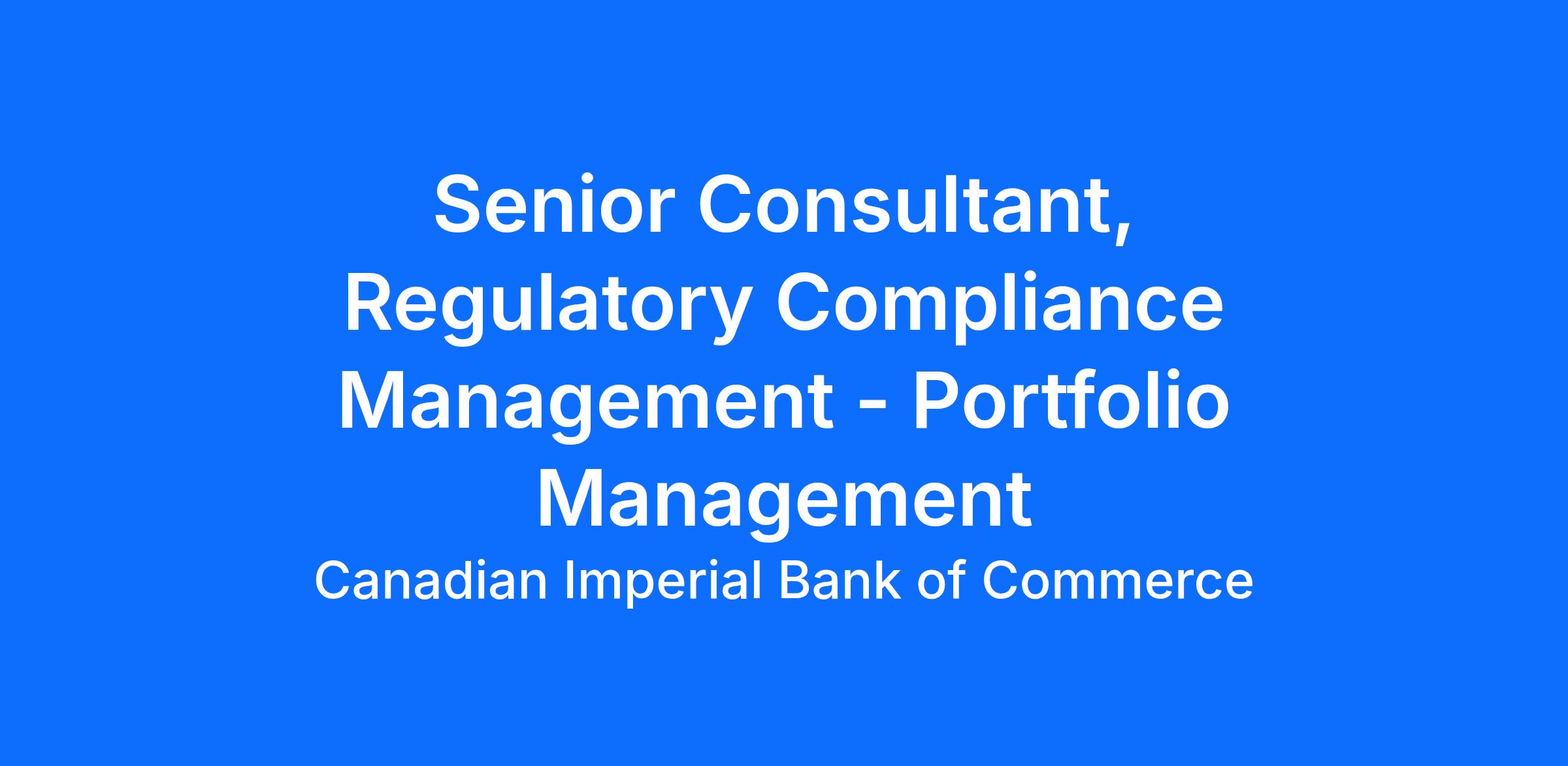 The Regulatory Compliance Management (RCM) team provides timely support and management of CIBC’s enterprise-wide Regulatory Compliance Management program (RCM Program). Working with the Bank’s Oversight Functions, the RCM team ensures that the regulatory compliance management program is operating effectively and efficiently across the enterprise. Reporting to the Director, RCM, as a Senior Consultant, you will support the RCM team to execute their responsibilities under the RCM program, including performing regulatory oversight, implementing and enhancing RCM program processes, training and reporting.