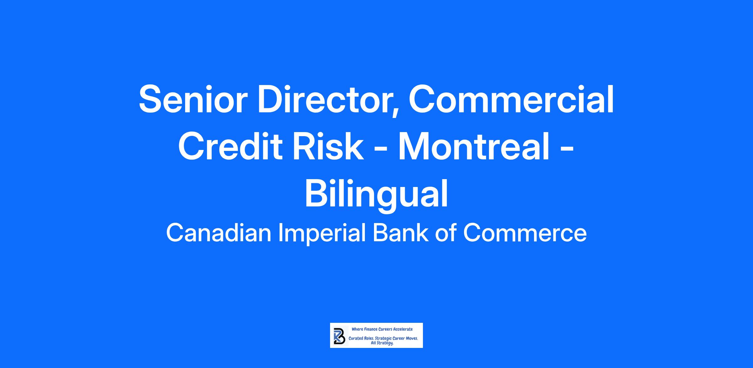 In your role as Senior Director, Commercial Credit you will manage a major segment of risk rated credits from Commercial Banking, Quebec and Atlantic Canada. By exercising good credit judgment and providing leadership to a group of risk managers, you will ensure that effective credit policies and strategies are in place and are adhered to in order to sustain portfolio quality and support effective portfolio growth. The candidate should be comfortable working virtually, and will invest in relationships with visits to locations and some travel will be required to meet partners and clients.