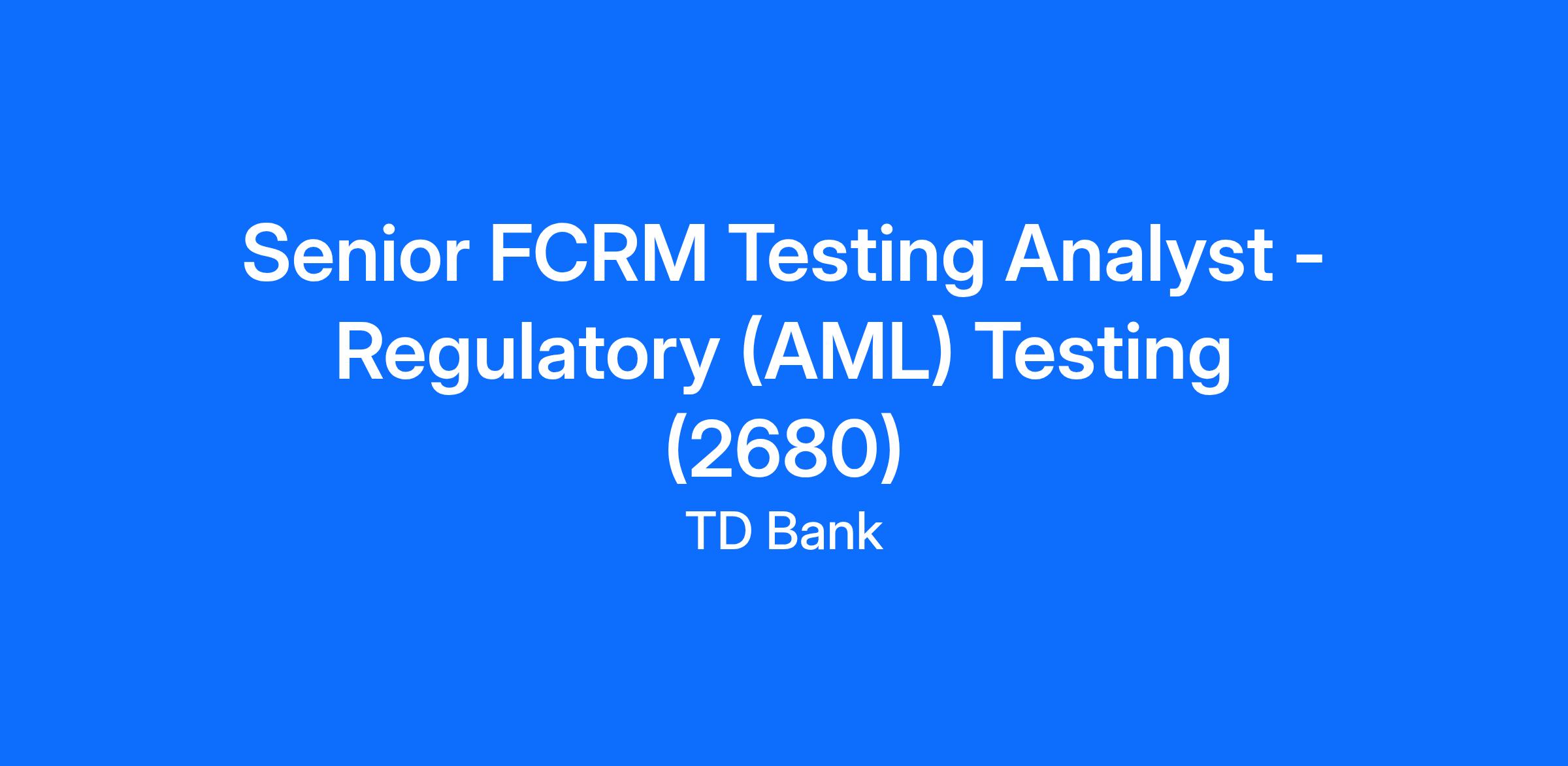 The Senior FCRM Testing Analyst – PCT Validations is responsible for conducting PCT validation testing of regulatory issue remediation activities. The position may assume leadership of the engagement and have responsibility for completion of testing phases. The position will develop test plans, and attributes, execute testing activities and monitor progress of the engagement.