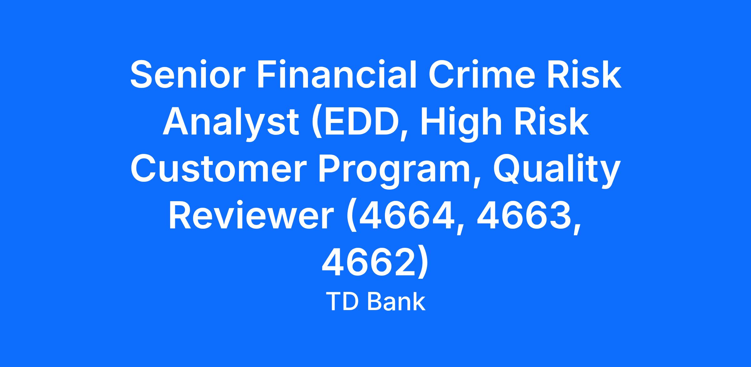 - As such, the Senior Financial Crime Risk Analyst (KYC, HRC Enhanced Due Diligence Program, Quality Reviewer) conducts the quality control reviews of all completed files that were subjected to EDD as well as any other analysis conducted by the High Risk Customer Program.