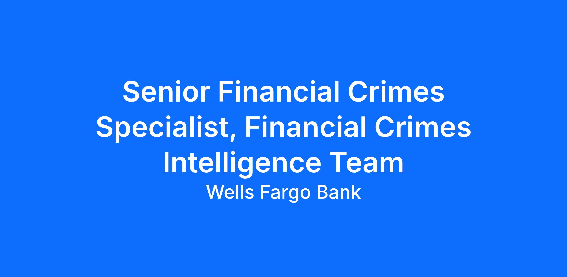 Wells Fargo is seeking a for the Financial Crimes Intelligence (FC Intel) within Financial Crimes Risk Management (FCRM). FC Intel provides Financial Crimes Risk Management (FCRM), business groups, and enterprise functions with industry-leading intelligence on financial crimes threats, typologies, and their impact to Wells Fargo. FC Intel supports FCRM programs, teams and business groups through reviews utilizing company data, external event information and the delivery of intelligence assessments.