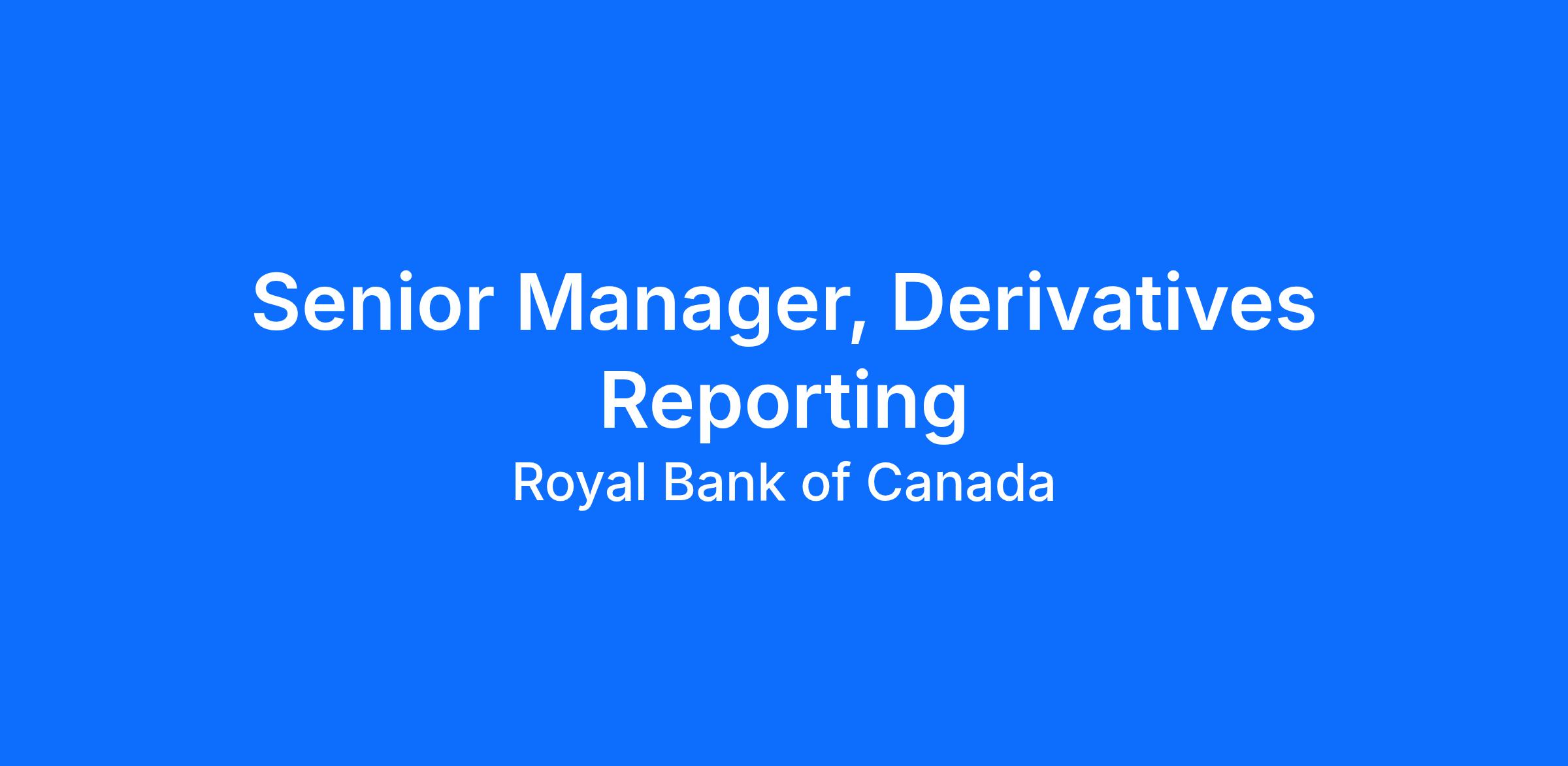 The Senior Manager, Derivatives Reporting provides leadership, efficient and effective management to the team. The Senior Manager, reporting to the Director, is an integral part of fostering team-building, trust and cross-functional efficiencies through effective collaboration with key contributors and stakeholders across a wide range of deliverables. The Senior Manager will be responsible for efficient and effective delivery of the enterprise-wide derivatives reporting processes and disclosures. These processes are critical to providing governance and control and ensuring meaningful disclosures regarding RBC’s derivatives portfolio are provided to Shareholders, Regulators and the Analyst community. The role provides the opportunity to build relationships with senior members from across Finance, Risk Management and our Business Platforms.