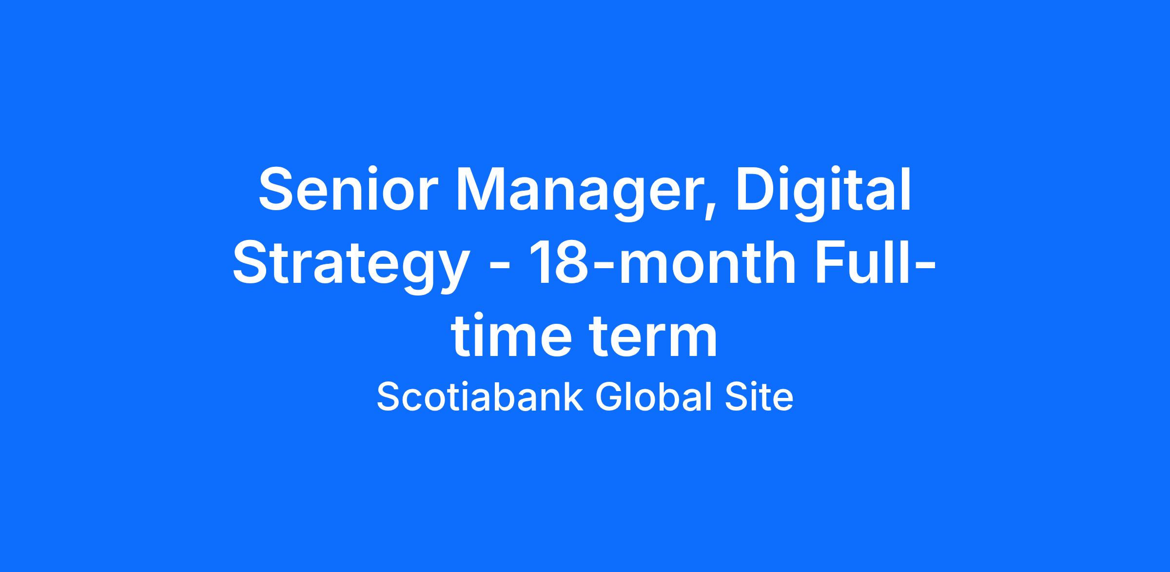 We are looking for a strategic, design‑minded leader to join our Digital Channel Growth & Performance team as Senior Manager, Design Strategy. In this role, you will shape the future of Scotiabank’s digital ecosystem—leading multi‑year strategic planning, guiding journey‑based design strategy, and enabling the delivery of seamless, personalized experiences across Canadian Banking. As a core partner to Digital Growth Initiatives, Engineering, Personalization, and Channel Strategy, you will define strategic direction, craft compelling executive‑ready narratives, and drive alignment across high‑visibility initiatives that impact millions of customers.