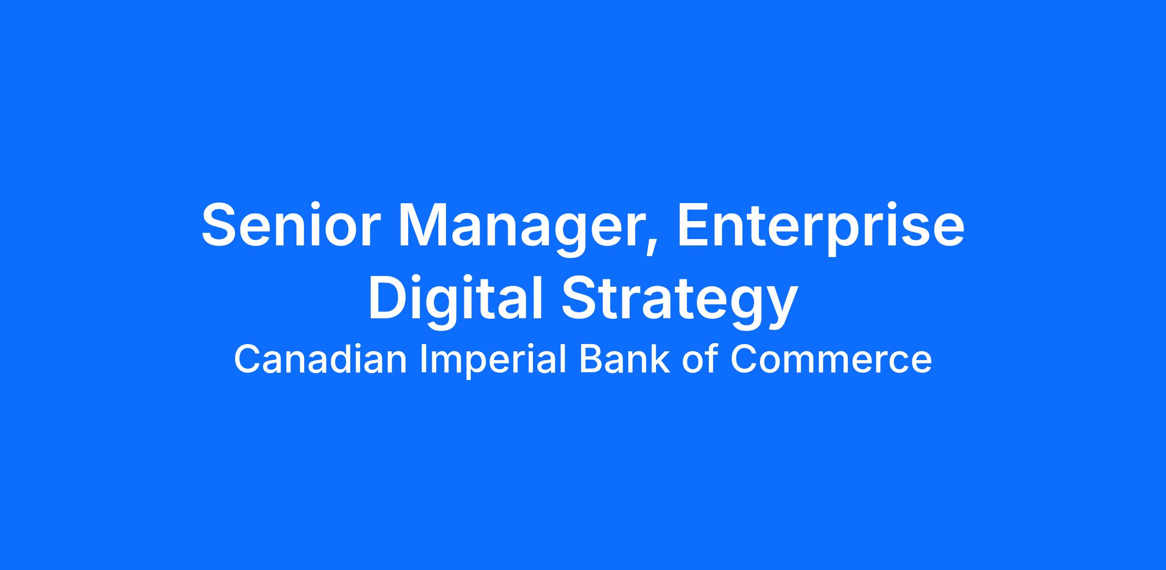 The Senior Manager, Enterprise Digital & AI Strategy will drive and articulate the strategic direction of CIBC’s digital growth, initiatives and client experience. You will be responsible for partnering across CIBC’s business units to build our enterprise digital strategy, based on the needs of our partners across the bank while also taking into account external factors that will influence our digital future. This is a highly collaborative mandate with exposure across the bank and will require strong thought leadership, strategic decision-making and proactive stakeholder management. You will lead cross-functional efforts with an objective to put in place highly complex strategic digital and AI transformation and integration activities to drive increased profitability, productivity and client experience. You will be flexible to meet the needs of our evolving digital strategy as the industry changes and our needs evolve.