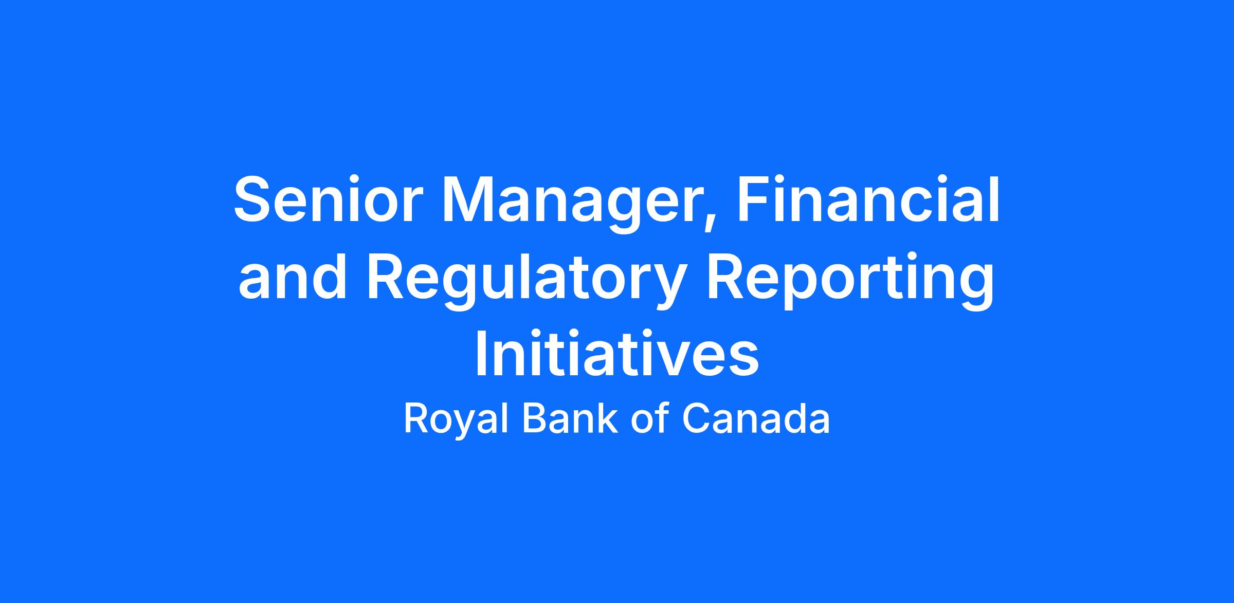Working with the Director, Financial and Regulatory Reporting Initiatives, the Senior Manager, Financial and Regulatory Reporting Initiatives, will be responsible for leading and managing the implementation of new regulatory, and financial including Intake and Analysis, and interpreting new rules and regulation and manage the process of delivering accurate, timely, consistent and value-added reporting to Senior Management and Financial Information Committee (FIC) agencies OSFI, Bank of Canada and CDIC and Statistics Canada. Additionally, the Senior Manager will work with the Director to enhance the systems, processes, and controls ensuring data integrity in our reporting. The role requires an individual who has strong regulatory reporting knowledge, technical, project collaboration and analytical abilities, is an effective communicator and shows willingness to acquire new skills and industry knowledge.