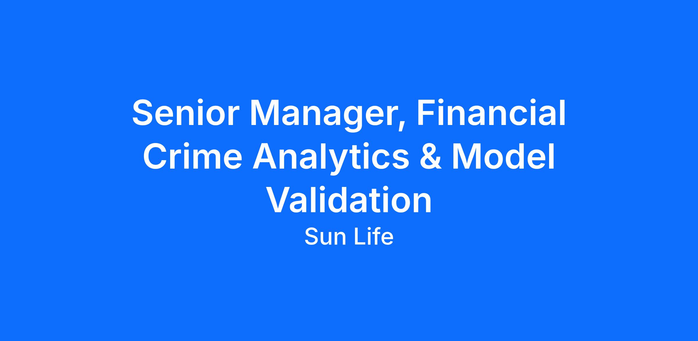 The Senior Manager, Financial Crime (FC) Analytics & Model Validation is responsible for leading the independent validation, performance monitoring, and optimization of FC models and analytics including those that support name screening (NS), transaction monitoring (TM), and client risk rating (CRR).