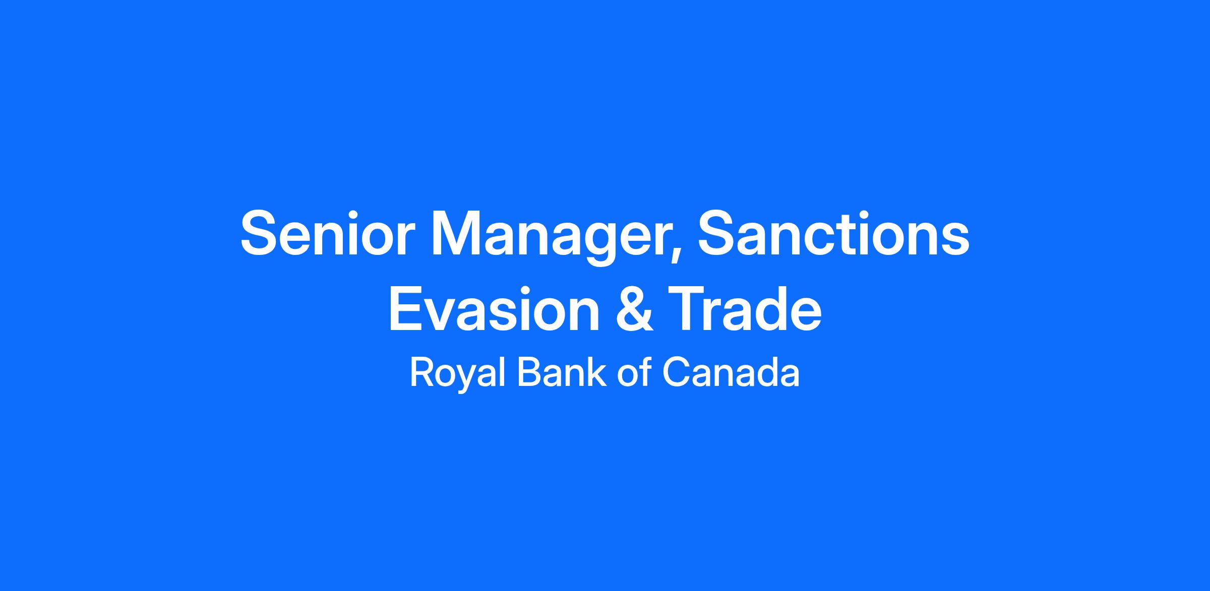 - Lead projects enhancing RBC’s sanctions-related controls to incorporate sanctions and export control evasion risks globally.