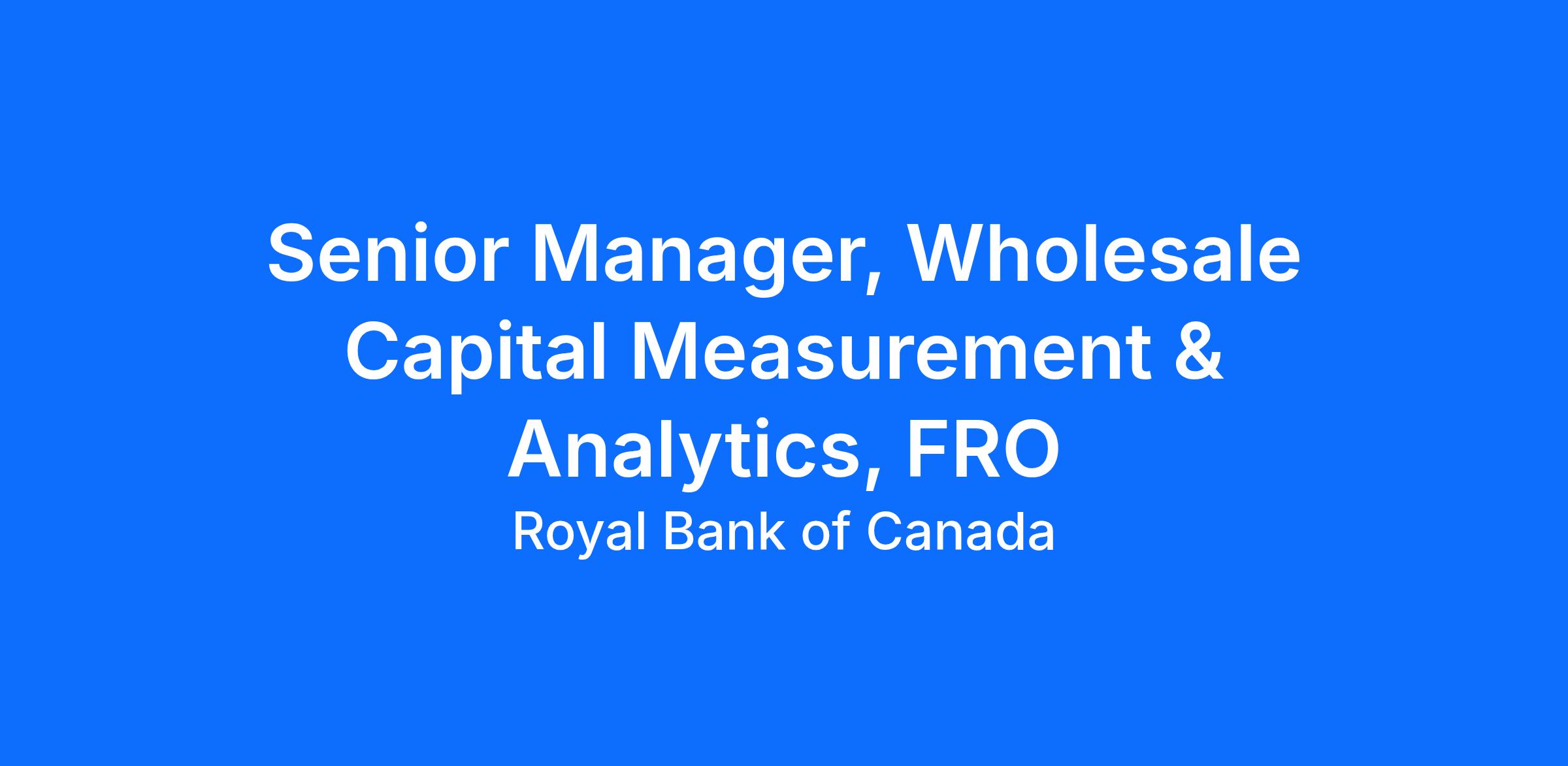 The Senior Manager, Wholesale Capital Measurement & Analytics will be responsible for driving capital measurement related activities for RBC’s wholesale portfolios and supporting preparation of various RBC disclosures such RBC’s Basel Capital Adequacy Requirements (BCAR) reporting to OSFI, Pillar 3, NCR, etc. In addition to that, the incumbent will play a key role in driving and eventual implementation of some of the very complex and critical deliverables as part of FRO’s Axiom project and BIV implementation.