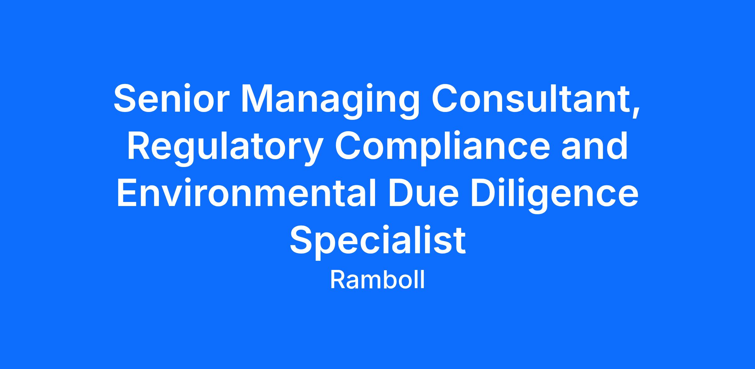 Our new Senior Managing Consultant will have significant consulting experience (12 years+) in the Canadian environmental consulting industry conducting/managing Phase I environmental site assessments, merger and acquisition portfolio assessments, compliance audits of complex industrial facilities and assisting clients with maintaining and achieving environmental regulatory compliance. Ramboll has a small and very capable group of environmental compliance staff, and this senior role would be responsible for developing and leading a robust CST practice across Canada, working in close collaboration with senior CST practitioners across the United States and globally.