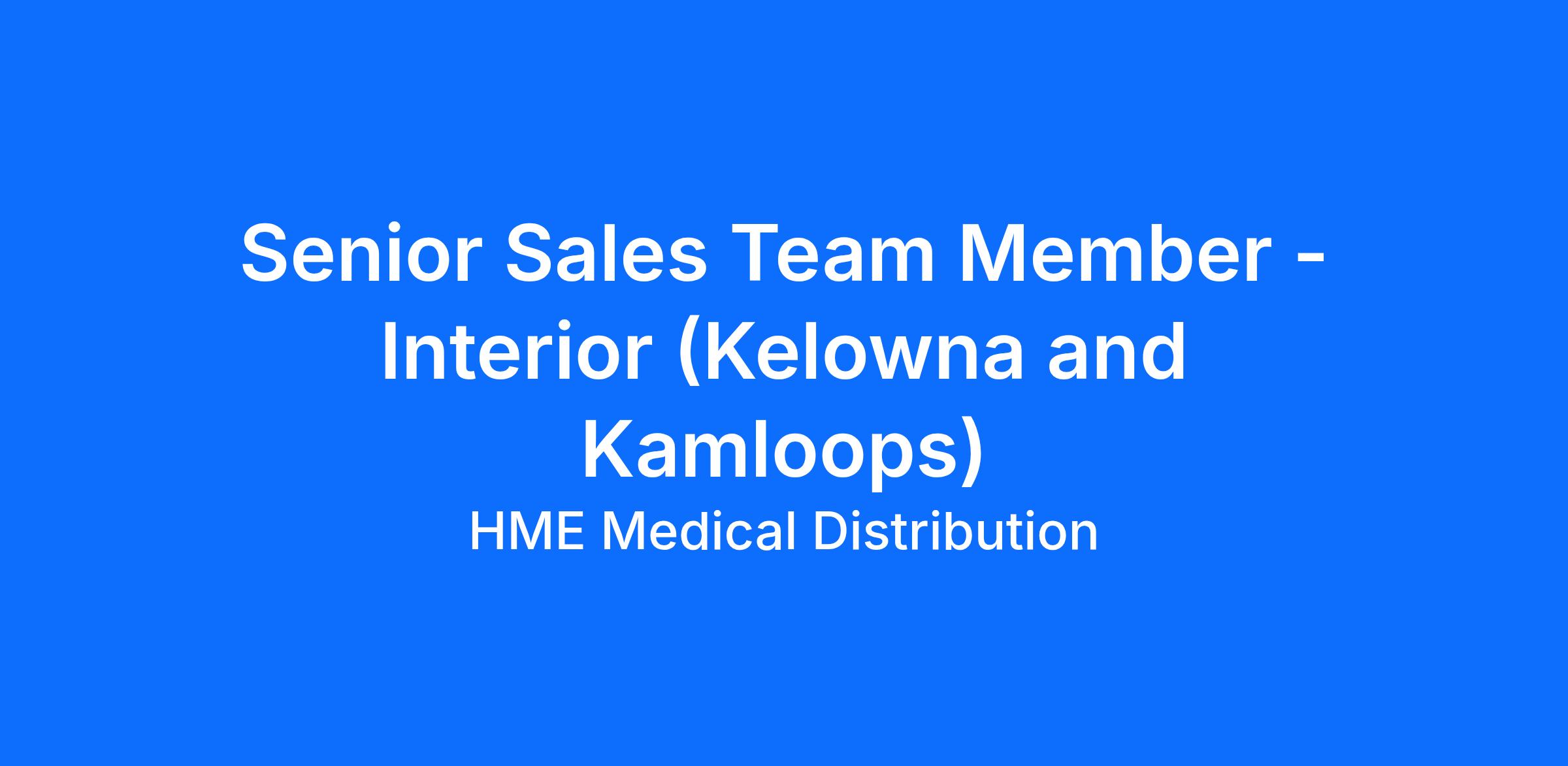 We are currently seeking a talented and experienced individual to join our growing team as a Senior Sales Team Member for the Sales Group at our Interior (Kelowna and Kamloops) locations.