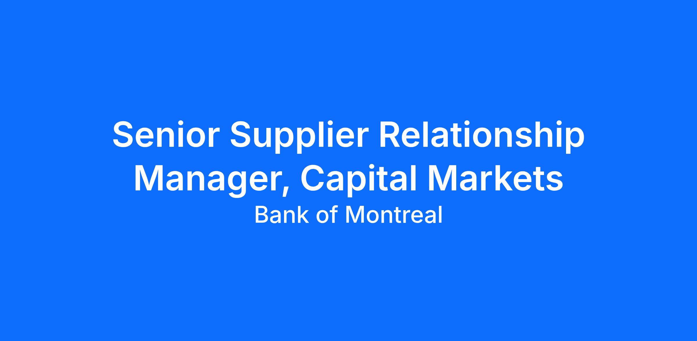 - Participates in the relationship management between BMO internal business/group partners and suppliers/service providers.