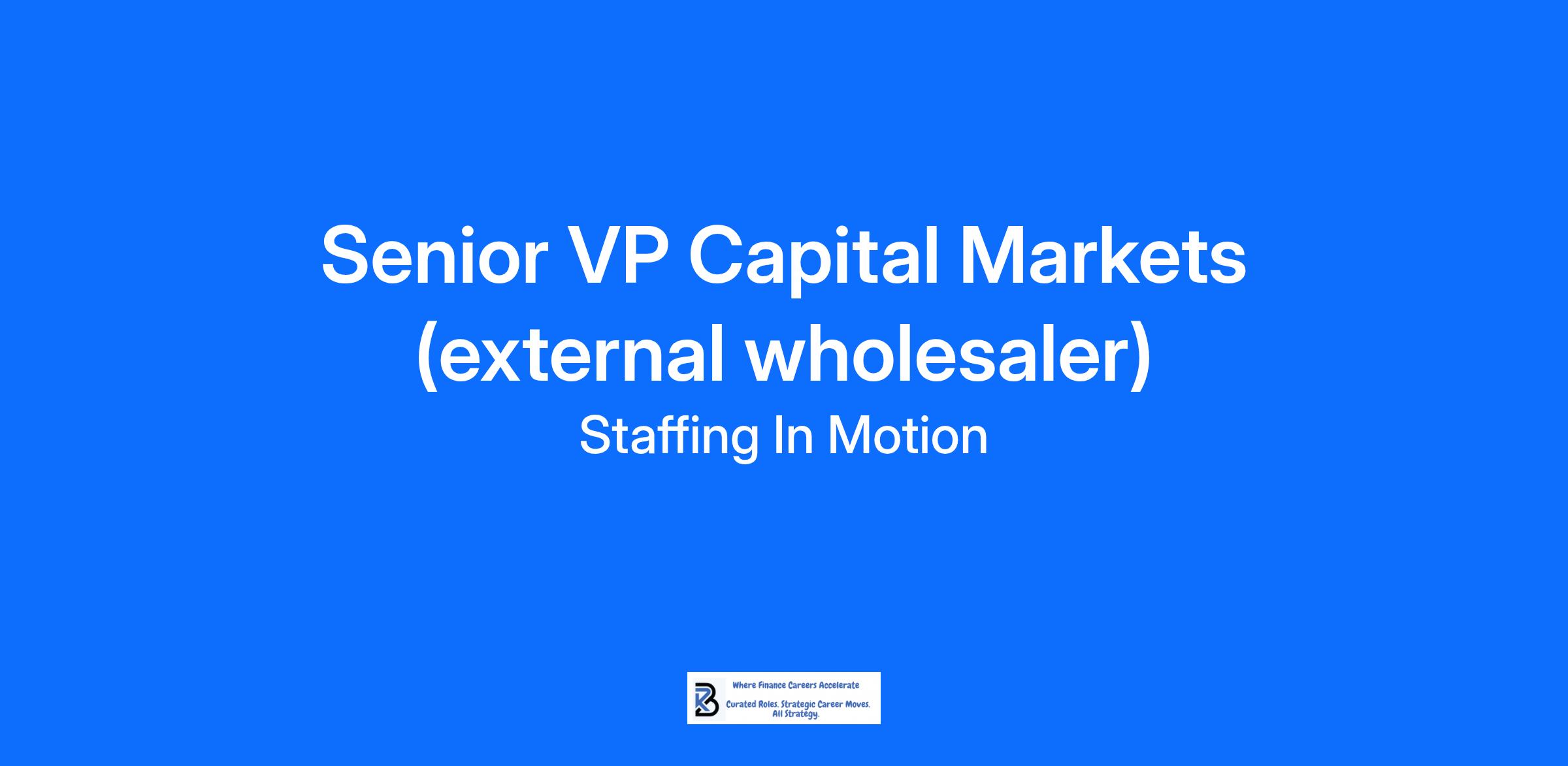 Job Description: Senior VP Capital Markets (External Wholesaler)