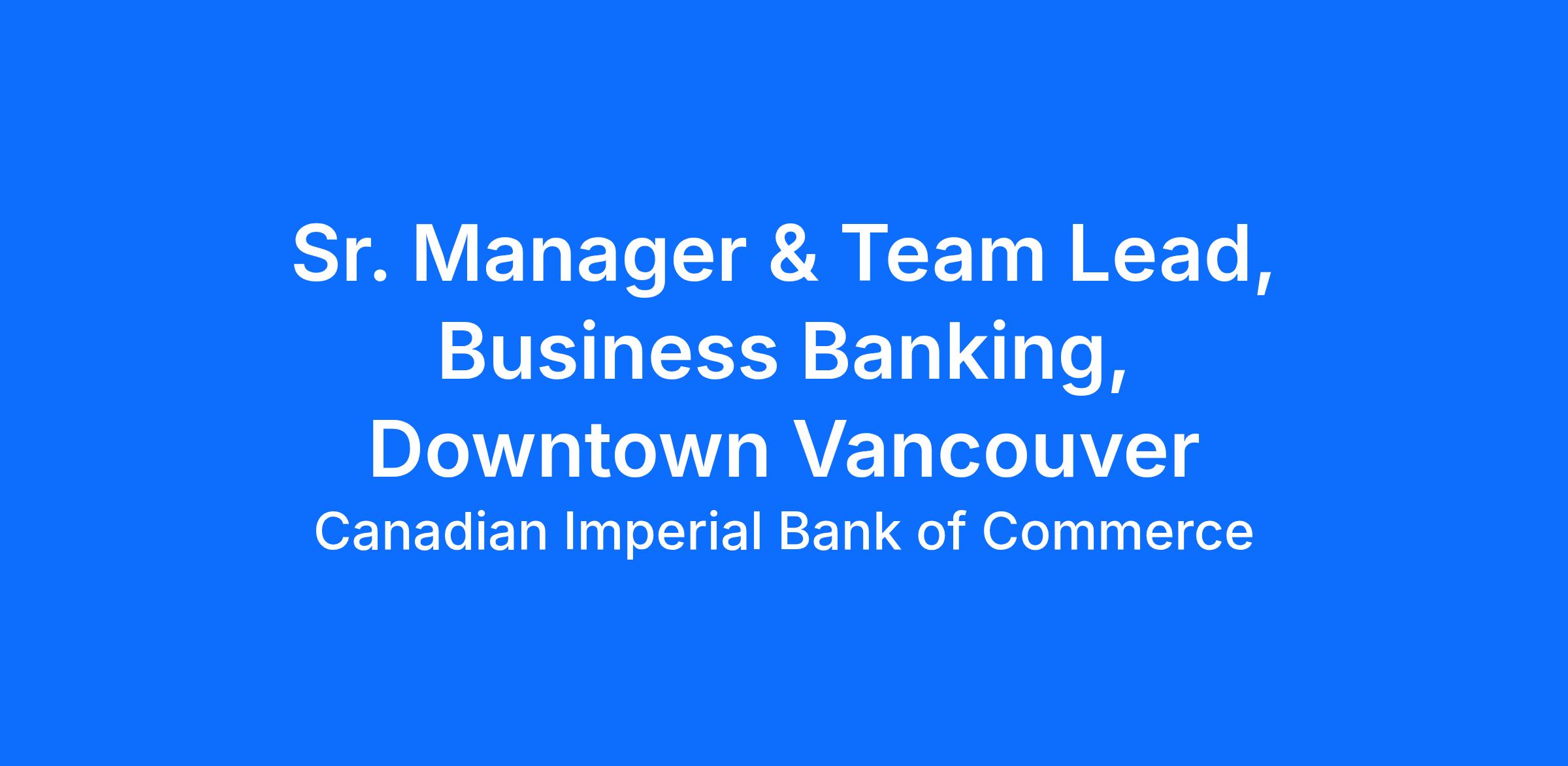 As the Senior Manager & Team Lead, Business Banking you’ll responsible for building, developing and leading a team of Relationship Managers, Business Advisors and/or Associate Business Advisors to meet the business needs of our high complexity business clients and drive growth by providing advice/services on a broad range of business products. Along with your team, you’ll be accountable for growing the portfolio of business banking clients by proactively developing new business, credit and cash management opportunities in the community, including end to end credit management, to meet/exceed the portfolio financial plan. You’ll utilize your understanding of what is important to our business clients and ensure we provide advice and the appropriate products and solutions to meet our clients goals. You’ll build a capable and motivated team through proactive talent management, create a positive work environment, ensure effective operations, processes, controls and compliance, and promote CIBC to build a strong reputation in the market resulting in superior client experiences and growth that exceeds our peers.