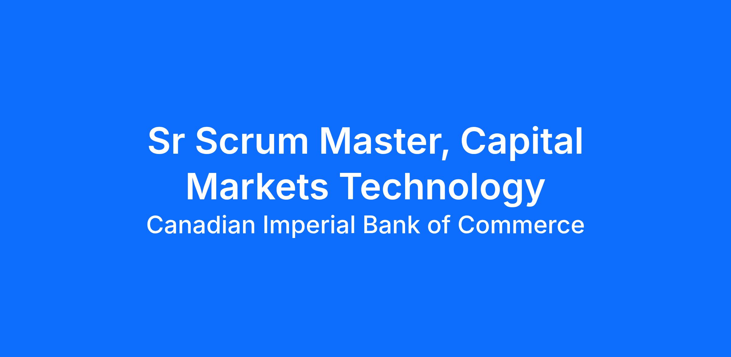 As a member of CIBC’s Capital Markets Technology, CRM, Banking, Finance and Adjudication team, you’ll be the change agent in driving transformational change across many areas of the business. As a Sr Scrum Master, you’ll advocate the Scrum values, principles and practices, model agile behaviors, and mindset, and help bring a product vision to life in collaboration with the product owner and the team. Using your skills in helping the teams to better collaborate, resolve conflicts and to work towards continuous improvement and value delivery. You will act as a ‘servant leader’ in your role as a Sr Scrum Master.