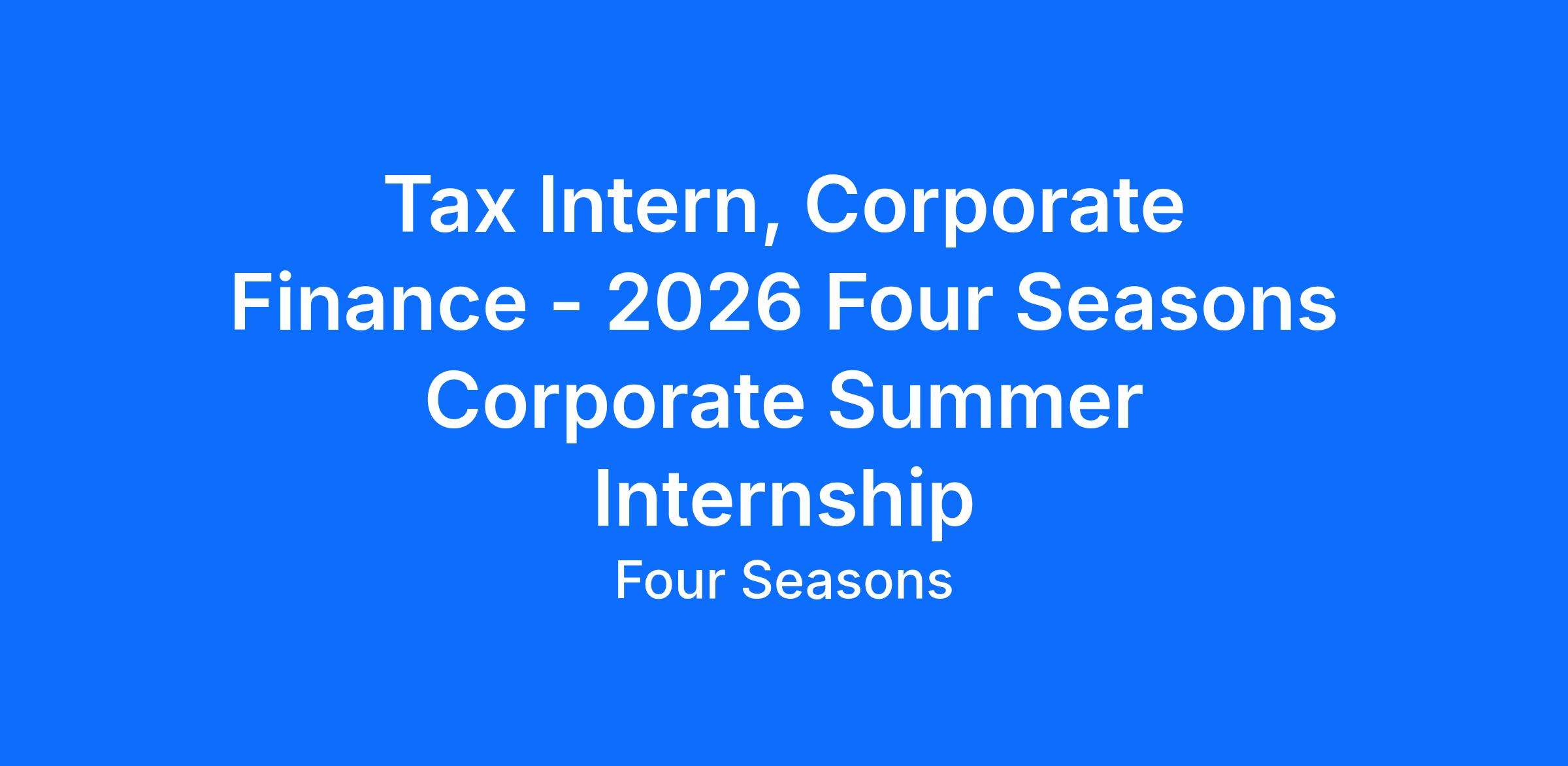 Tax Intern, Corporate Finance - 2026 Four Seasons Corporate Summer Internship