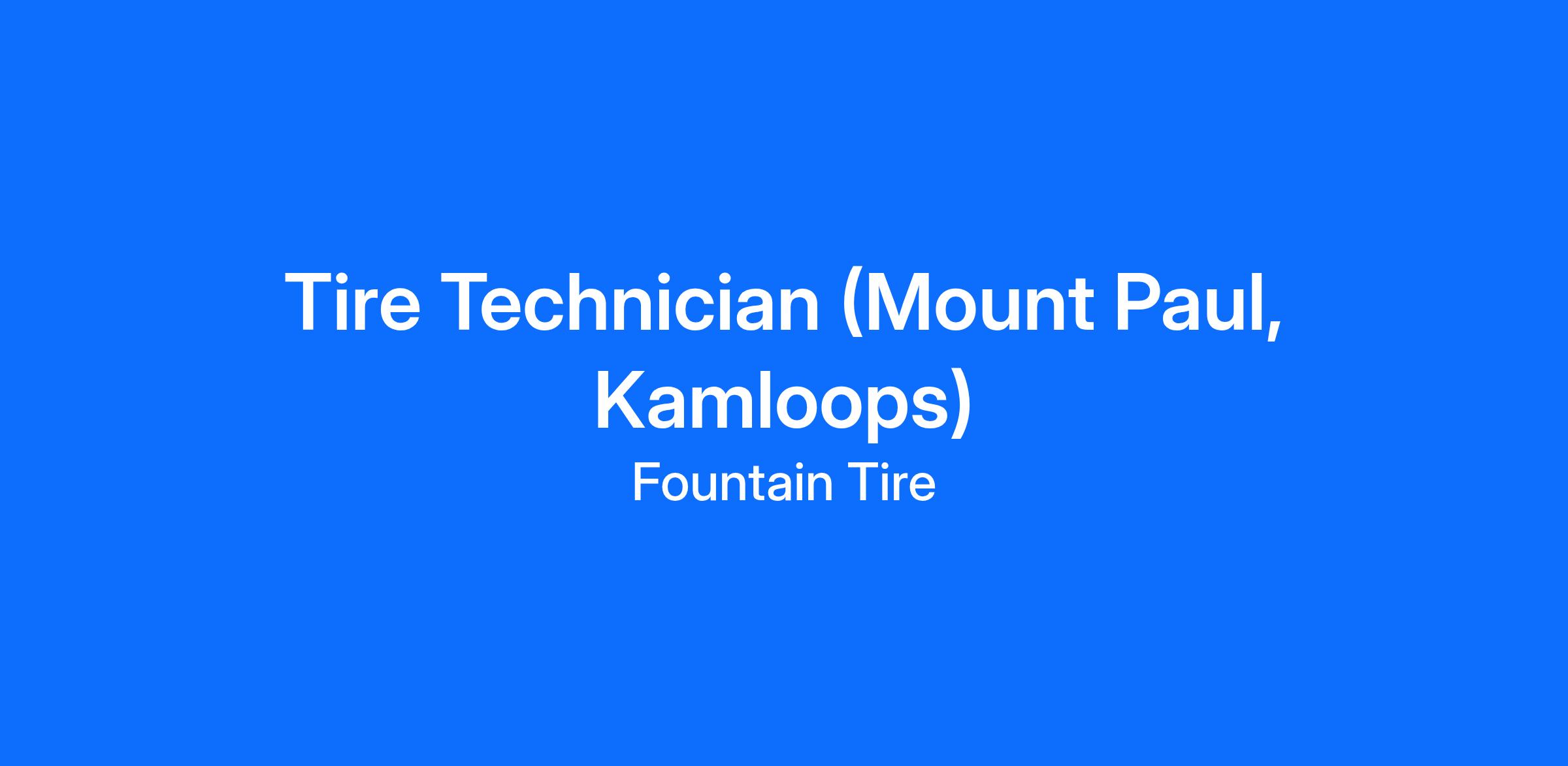 Fountain Tire Kamloops (Mount Paul), an established automotive repair shop, is looking for a responsible, safe, and dedicated associate to join our team as a Tire Technician!