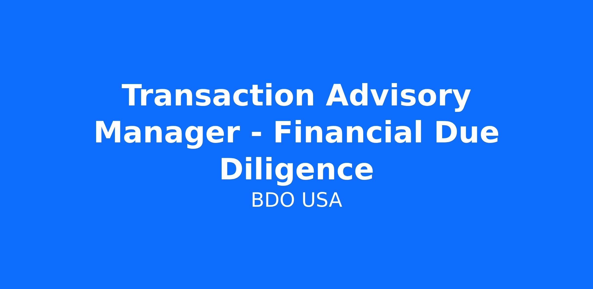 Transaction Advisory Manager - Financial Due Diligence