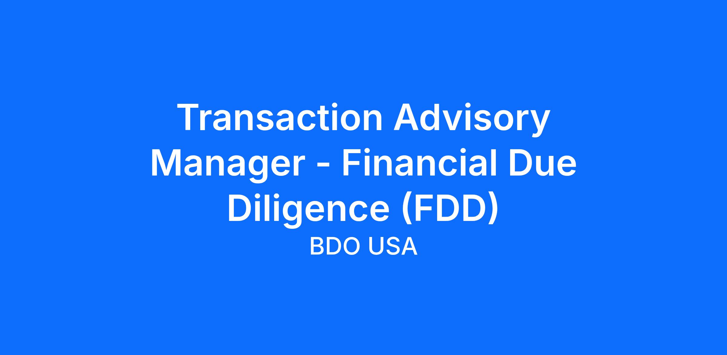 The Transaction Advisory Services Manager is responsible for managing financial, accounting and operational due diligence engagements.