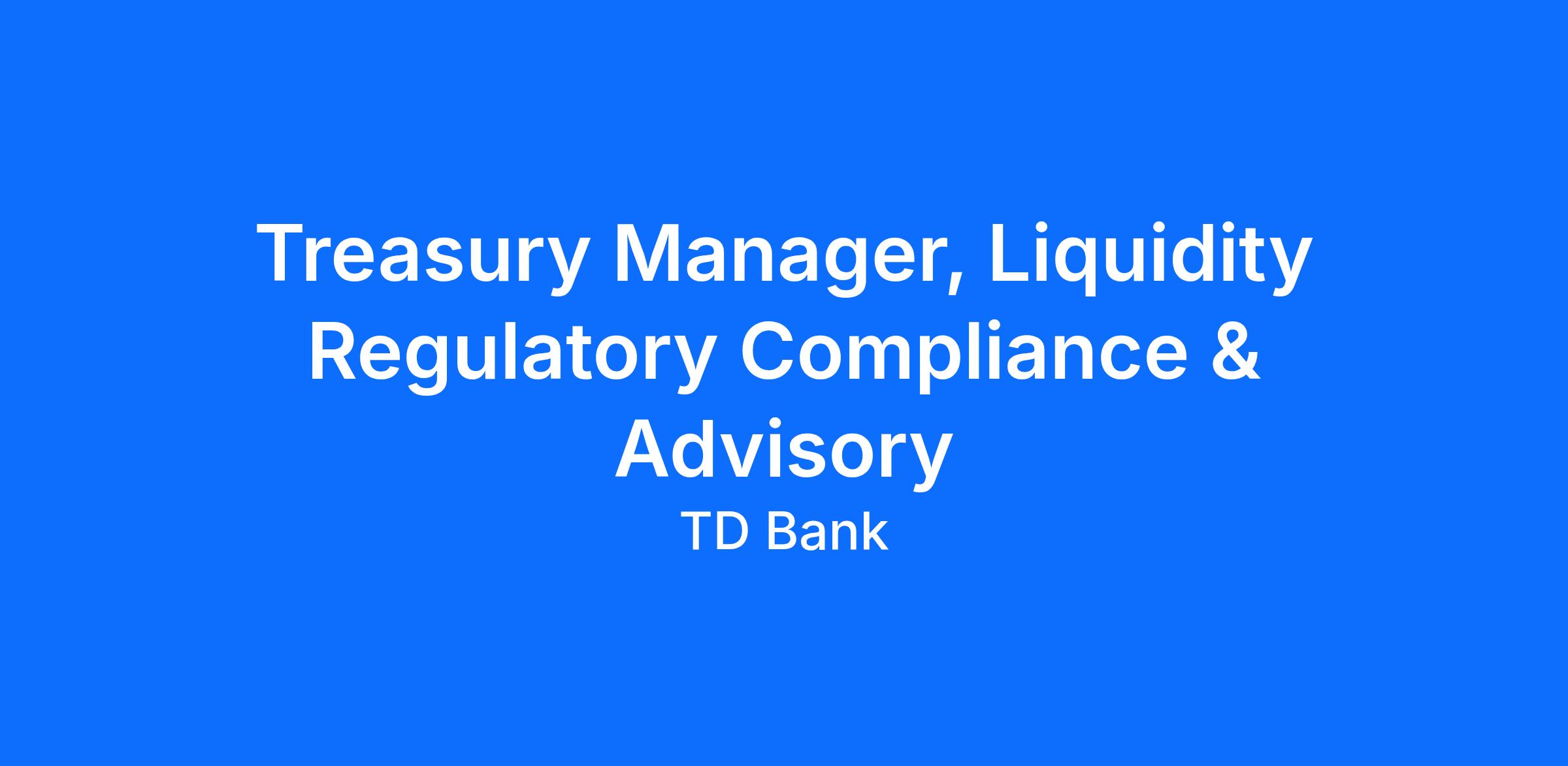 The Treasury Manager on the Liquidity Regulatory Compliance & Advisory (LRCA) team plays a key role in ensuring TD’s compliance with OSFI liquidity regulations and advising on the interpretation and application of regulatory requirements across the Bank. The role focuses on regulatory compliance assessments, interpretation of guidance, advice on appropriate regulatory treatment for new business or products, and support for strategic enhancements to liquidity regulatory reporting.