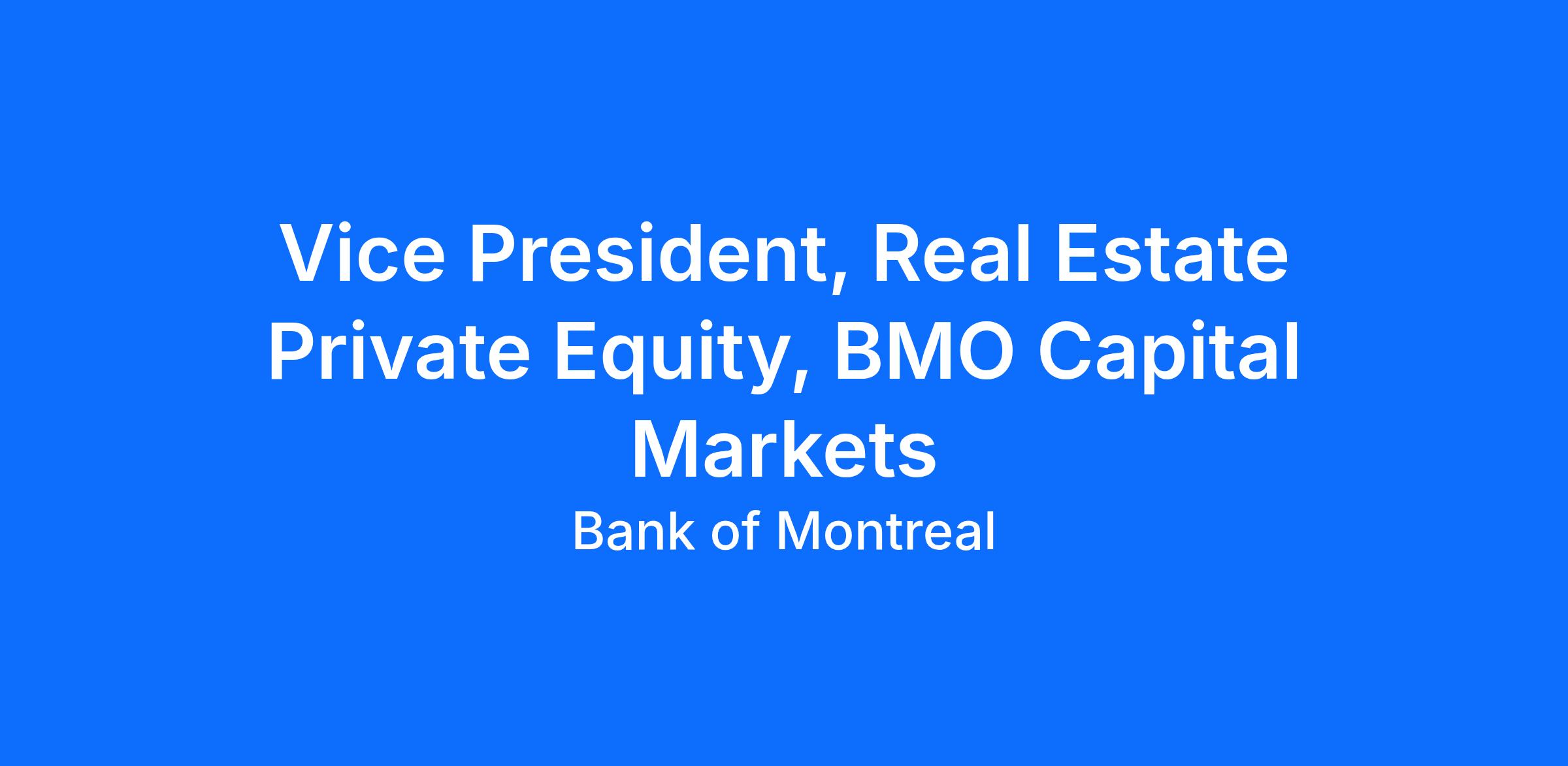 The Vice President (“VP”) is a senior member of BMO’s Real Estate Private Equity (“BRE Fund”) team, which invests the Bank’s balance sheet alongside leading sponsor and developer clients as direct equity in development and value‑add projects across Canada. The VP leads day‑to‑day value creation on designated LP investments, drives portfolio‑level performance, and mentors junior team members while partnering closely with JV sponsors and internal stakeholders at BMO Capital Markets.